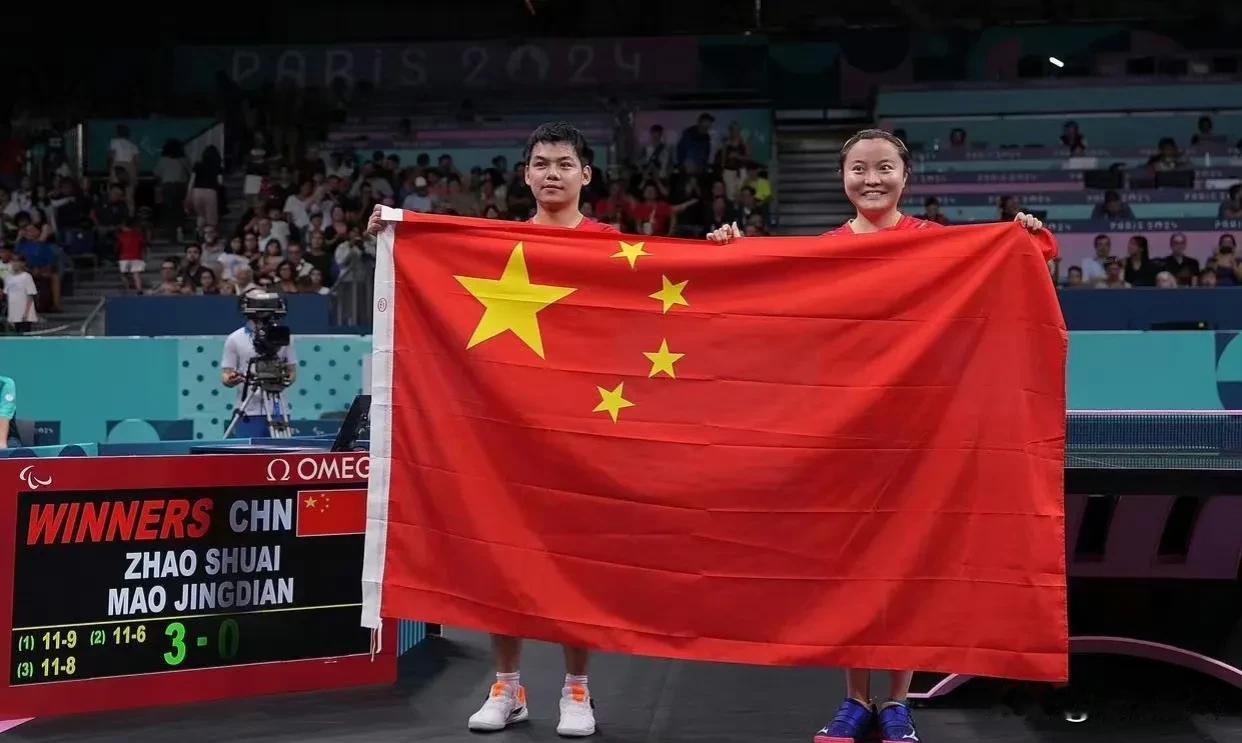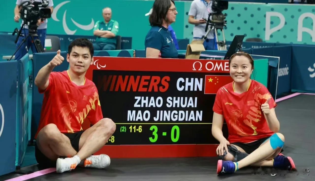 中国包揽混双冠亚军 在8月31日的巴黎残奥会乒乓球混双17级决赛中,中国组合赵帅与茅经典以3比0的比分战胜队友彭伟楠与熊桂艳,成功摘得金牌,彭伟楠与熊桂艳获得亚军。 此次胜利充分展示了中国乒乓球队在残奥会中的强劲实力与卓越表现。