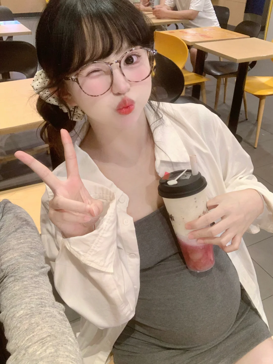 孕32周啦!肚子可以顶起一杯奶茶咯