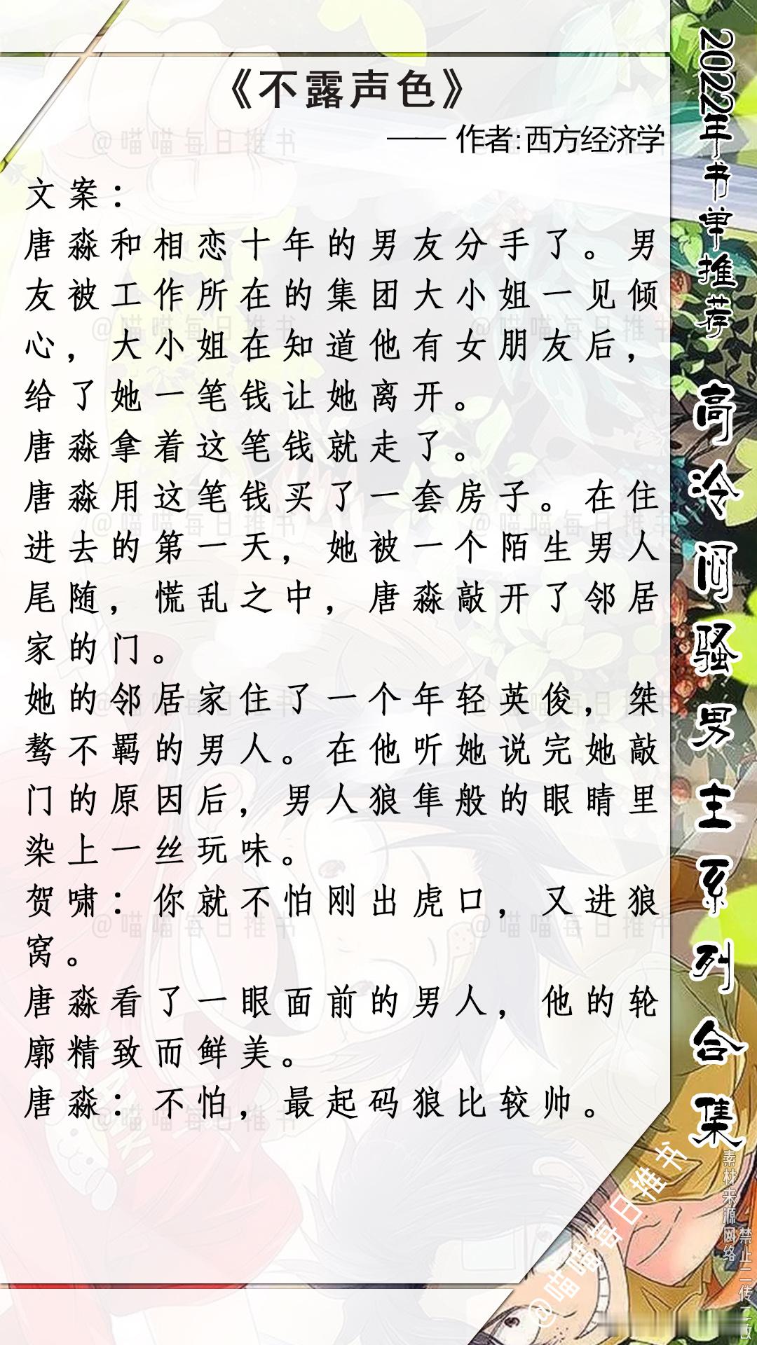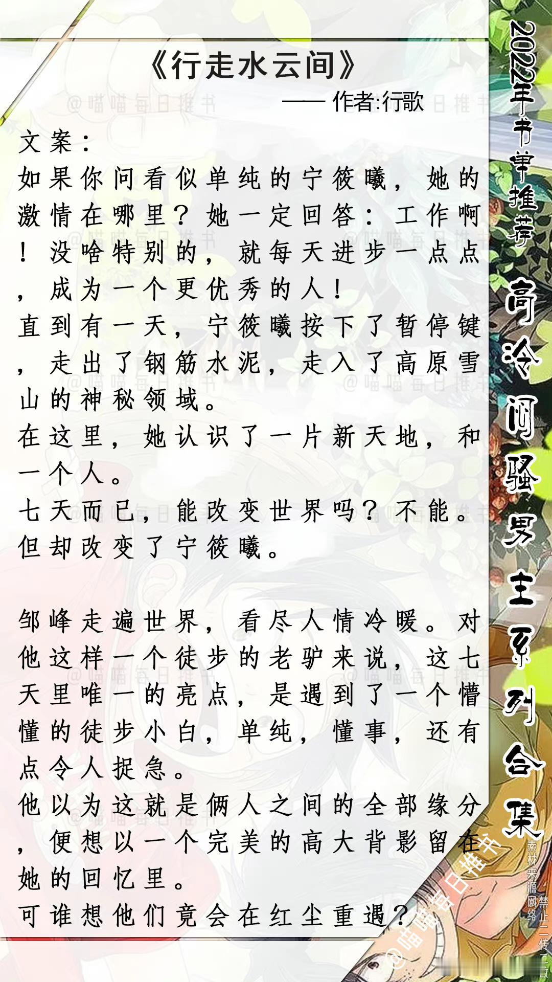 9. 《行走水云间》 作者:行歌#言情小说推荐##推文[超话]##每日推文[超话]##高冷闷骚男主
