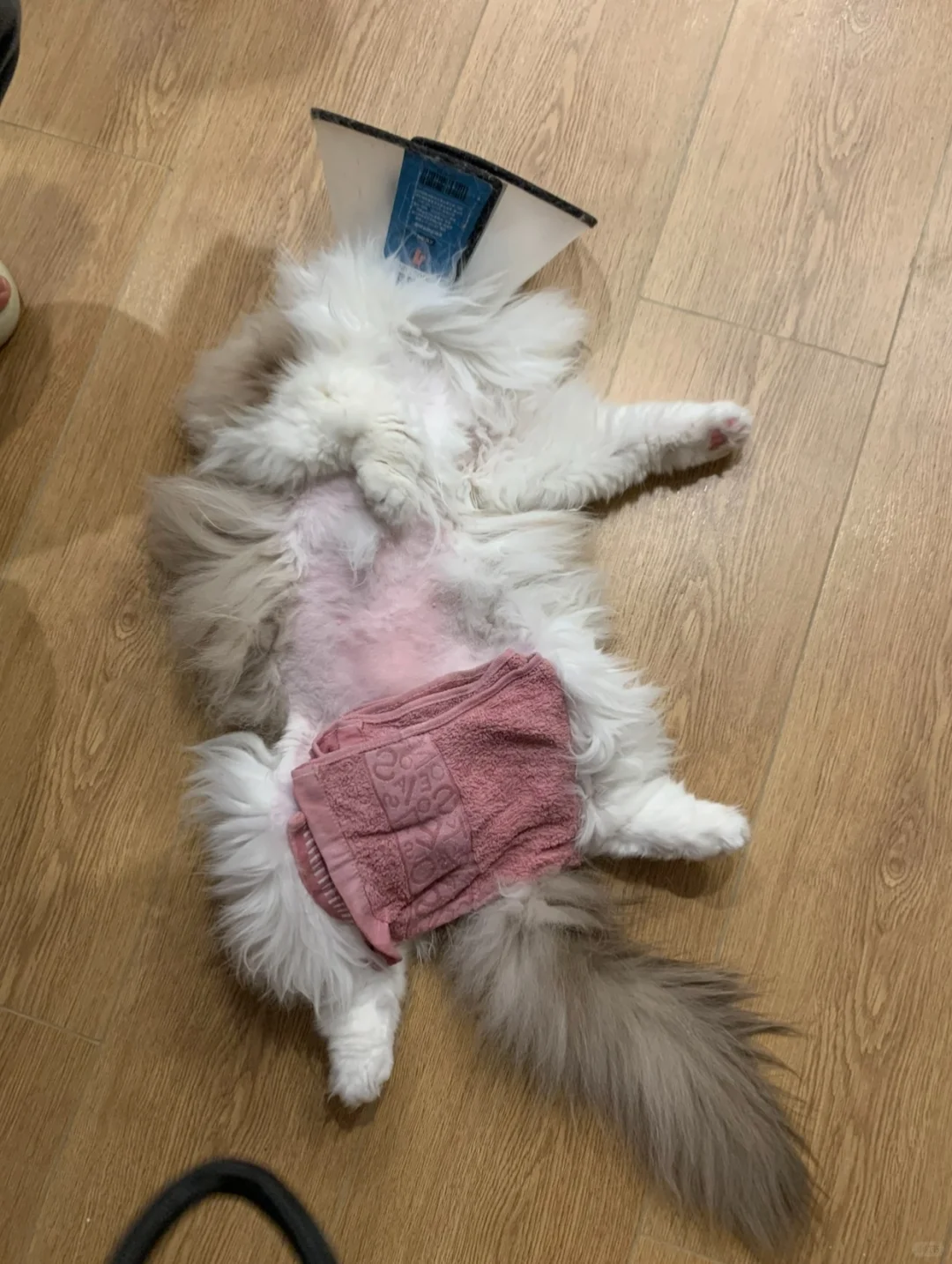 回家以后小心护理,它尿团还是小,偶尔带血丝,尿尿费劲,明显感觉在用力。