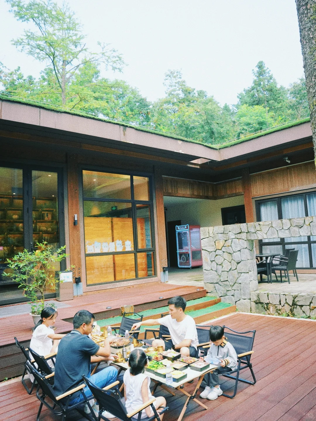 [黄色心形R]中午呢 我们就在书吧门口支起了烧烤摊 虽然山下还是高温 但是山上真的很舒服 建议大家 烧烤在下午4点左右 食材都非常新鲜 特别要夸赞香肠都是手工自己包这个一吃就吃出来了~ 抬头就是山林画 吃腻了就进去书吧喝2口冰茶 偶尔城市过累了 就来山林间隐居一下把~~