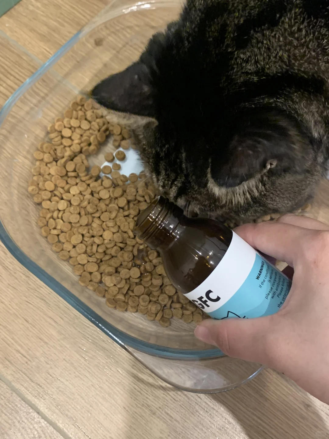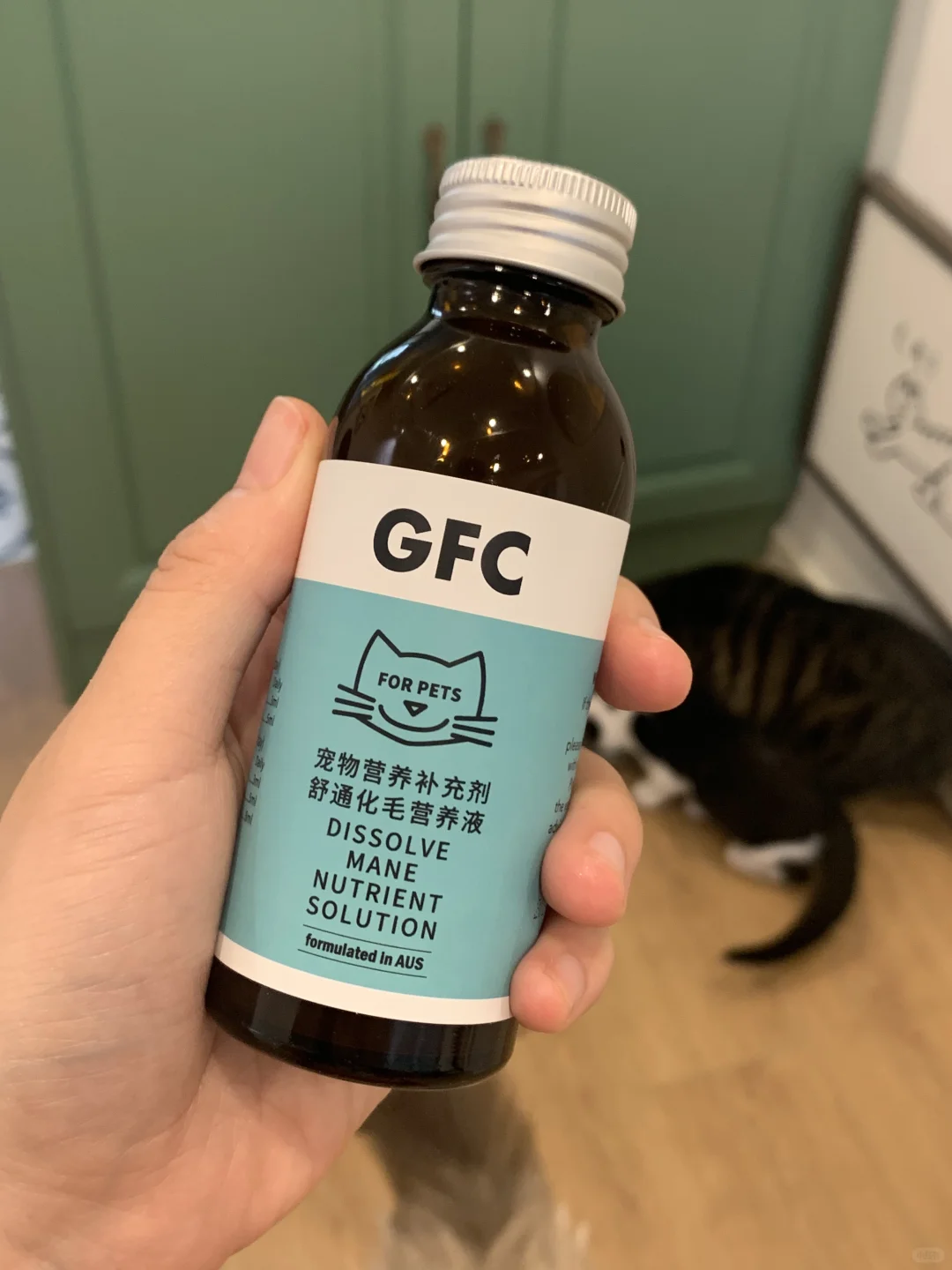 就是这个GFC化毛营养液 0矿物油不伤胃温和排毛球~ 掉毛小猫、爱干净爱舔毛小猫必备 我都是放到水碗里 扮到粮食里 味道也不错 猫咪也不排斥 无痛就把毛排了👏