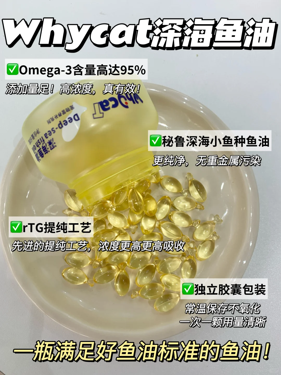 入口的东西必须得放心才行!🤓whycat鱼油的原料来自秘鲁渔场的深海小鱼🐟,水质好、污染少,生产出来的鱼油自然更健康,原料安全健康无添加!