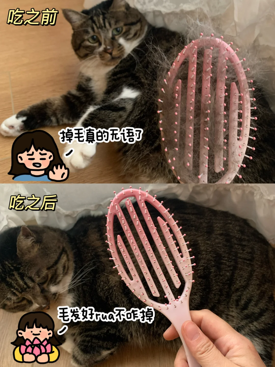 5️⃣精神压力:猫咪感到压力时,也会频繁舔毛,从而出现掉毛多的情况!