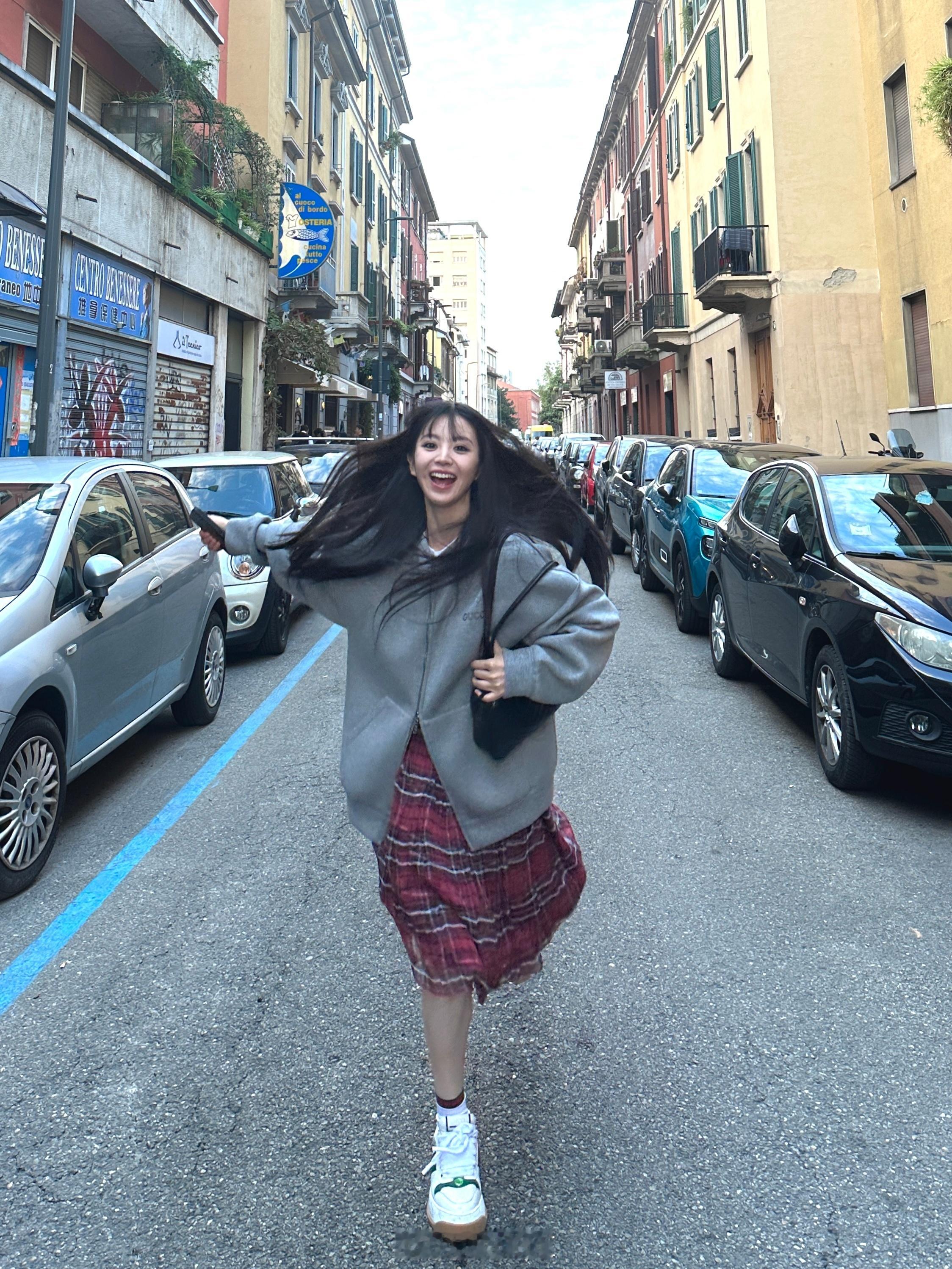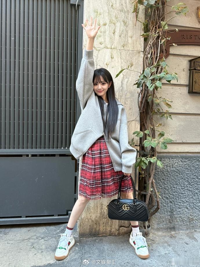 #田曦薇西班牙街头随拍##田曦薇灰色卫衣配红色格裙# 田曦薇在西班牙街头的随拍,灰色卫衣的简约与红色格裙的俏皮相互碰撞,呈现出独特的视觉效果。她漫步在街头,自信的步伐和灵动的眼神,让人不禁为她的美丽所倾倒。