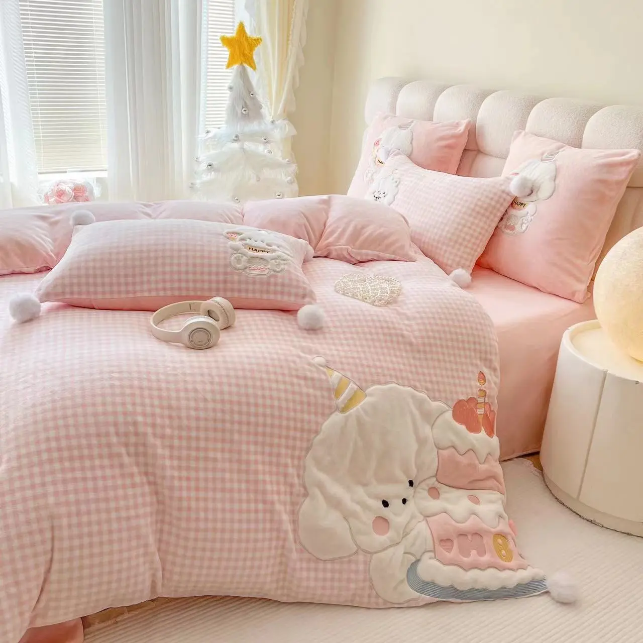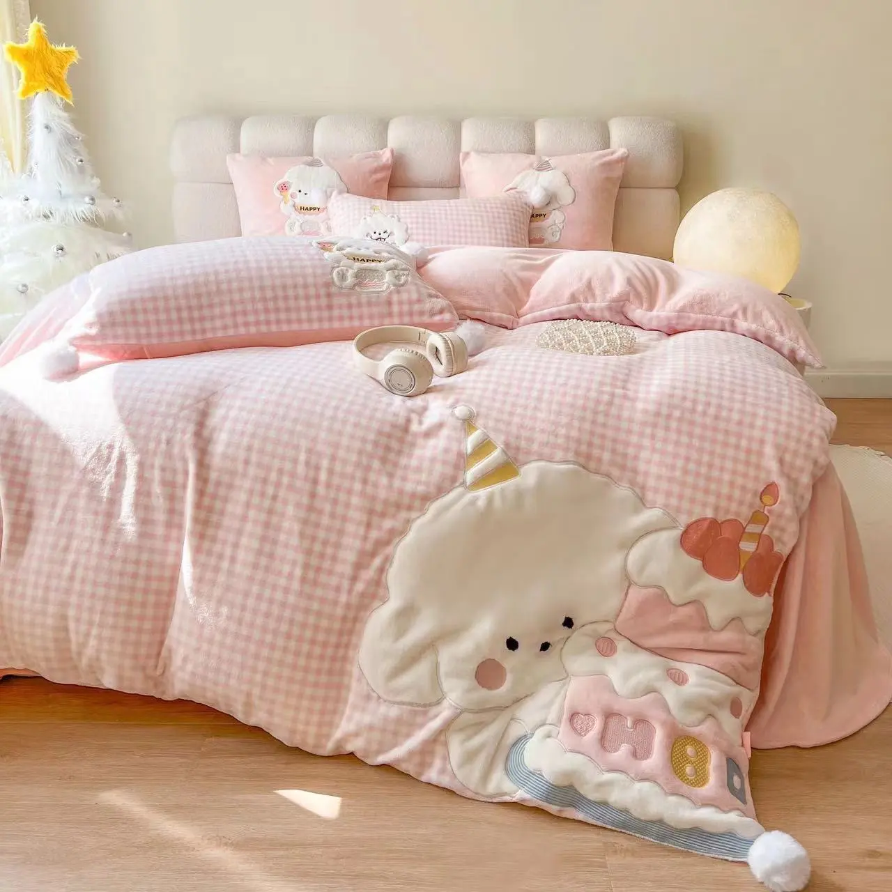 当小狗走进生活~!我画的小狗乐乐变成可爱的床品了!这个冬天有小狗陪你!~超级超级粉粉可爱!软乎乎!