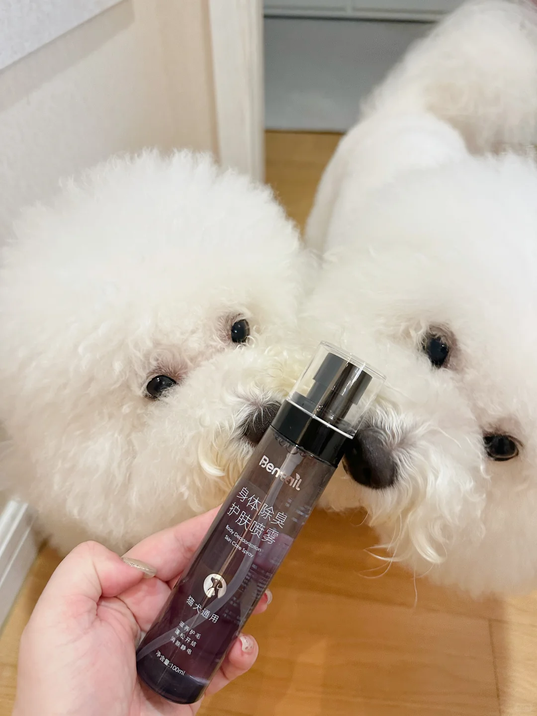 之后的护理就交给除臭喷雾啦。从根源上去除异味,还可以滋养毛毛,喷完再梳,毛毛富有光泽感。