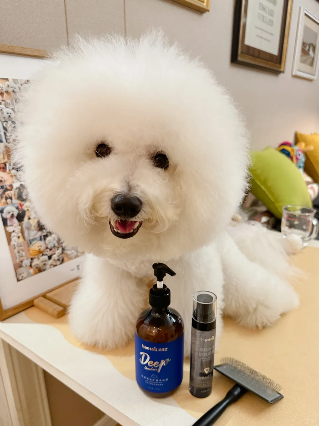为了让他们保持清新香气☑️,蓬松毛发☑️,就会拿出我得新神器,笨尾巴的沐浴乳和除臭喷雾。蓬松除臭两步走,先用沐浴露洗干净才能吹出蓬松毛发,沐浴乳的质地类似乳液很好打出绵密泡泡。里面还添加玻尿酸洗完毛毛柔顺好打理。