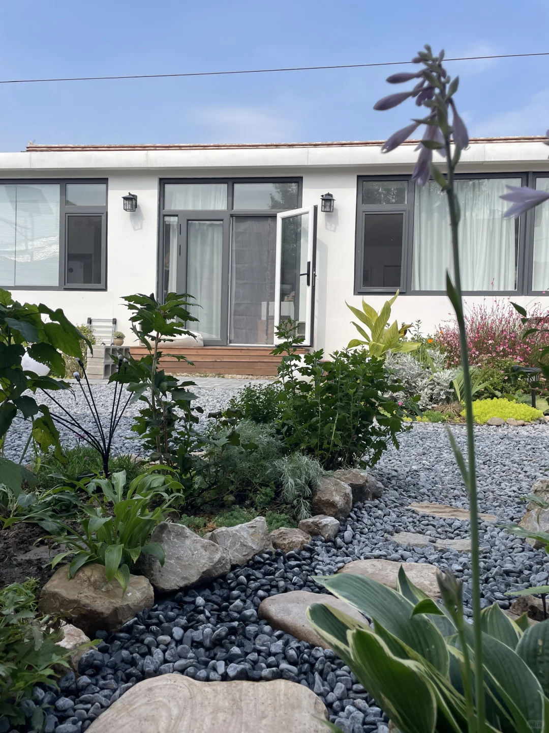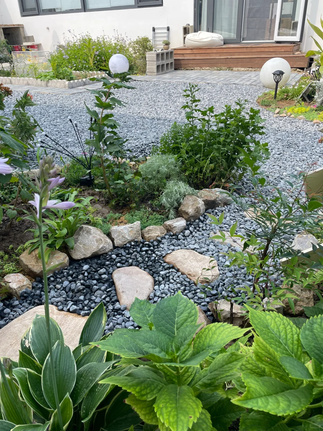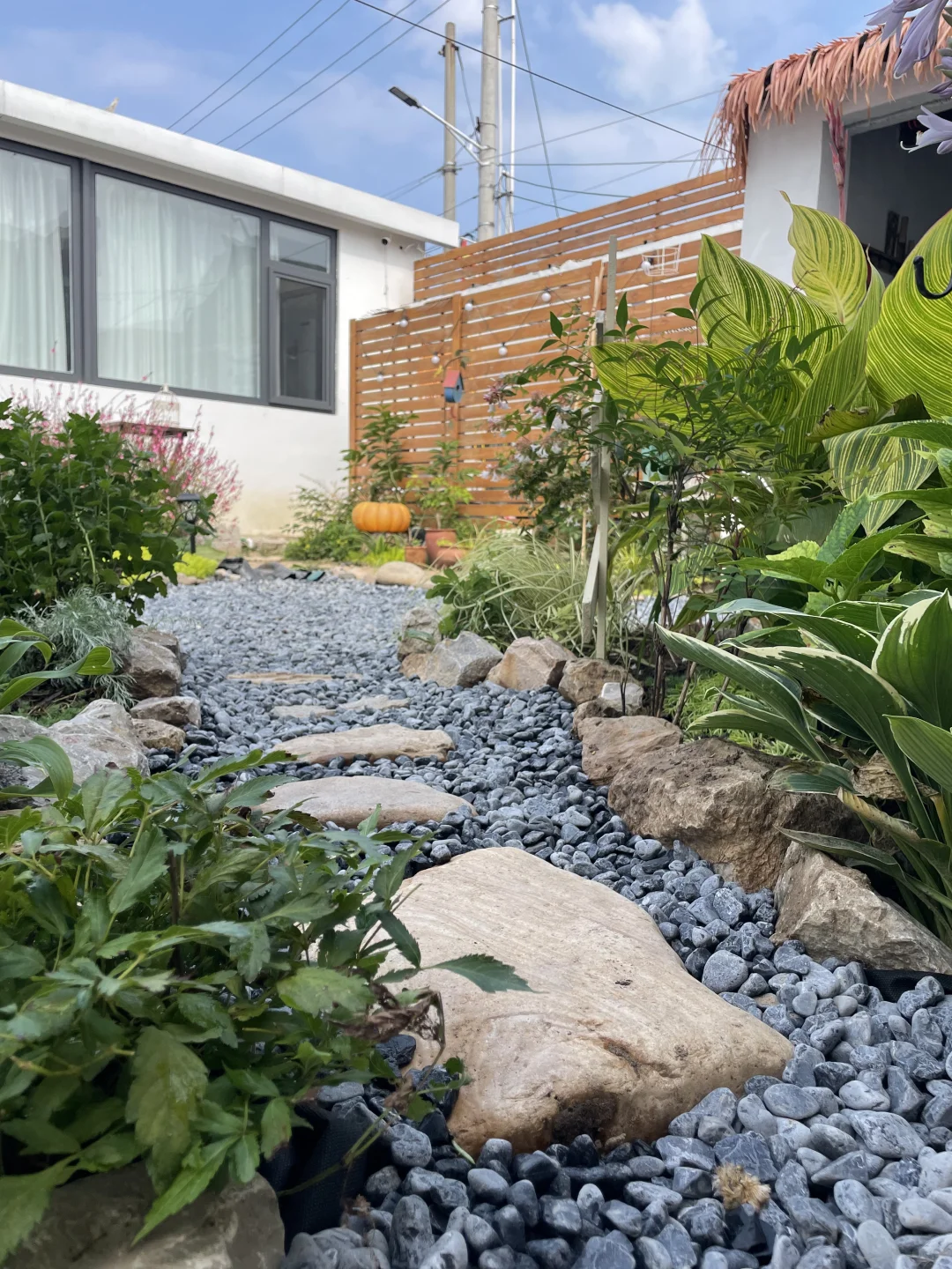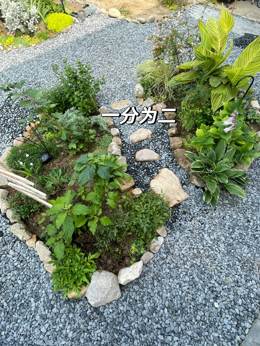 刚刚😍把花池一分为二,又开辟一条石子小路