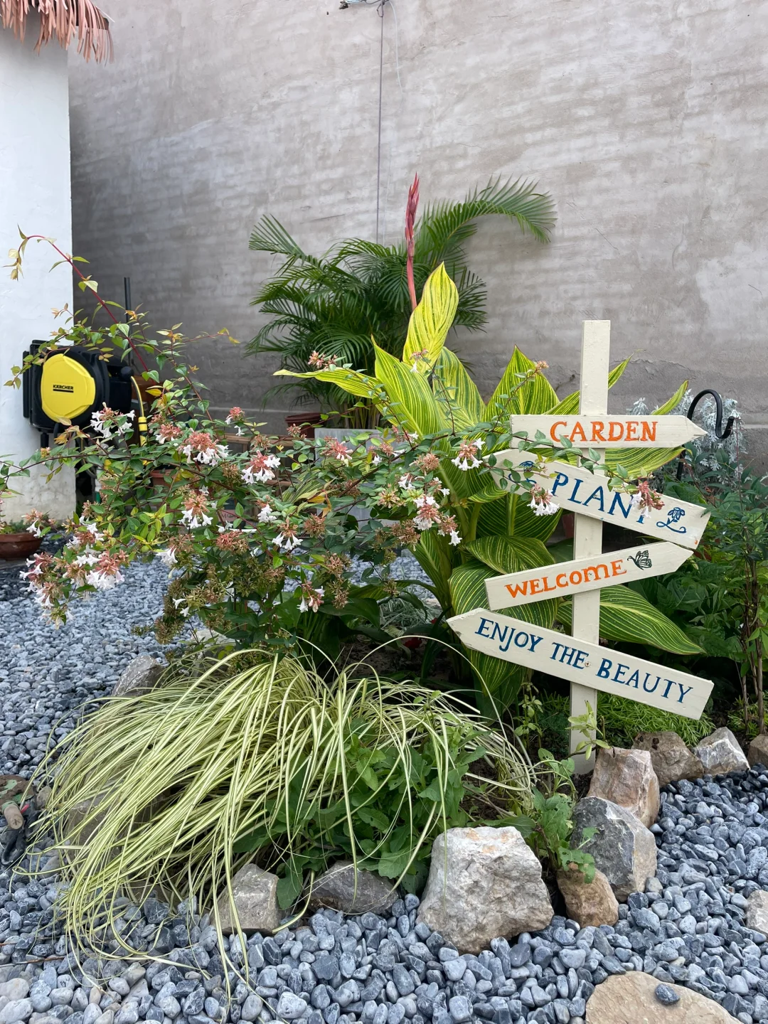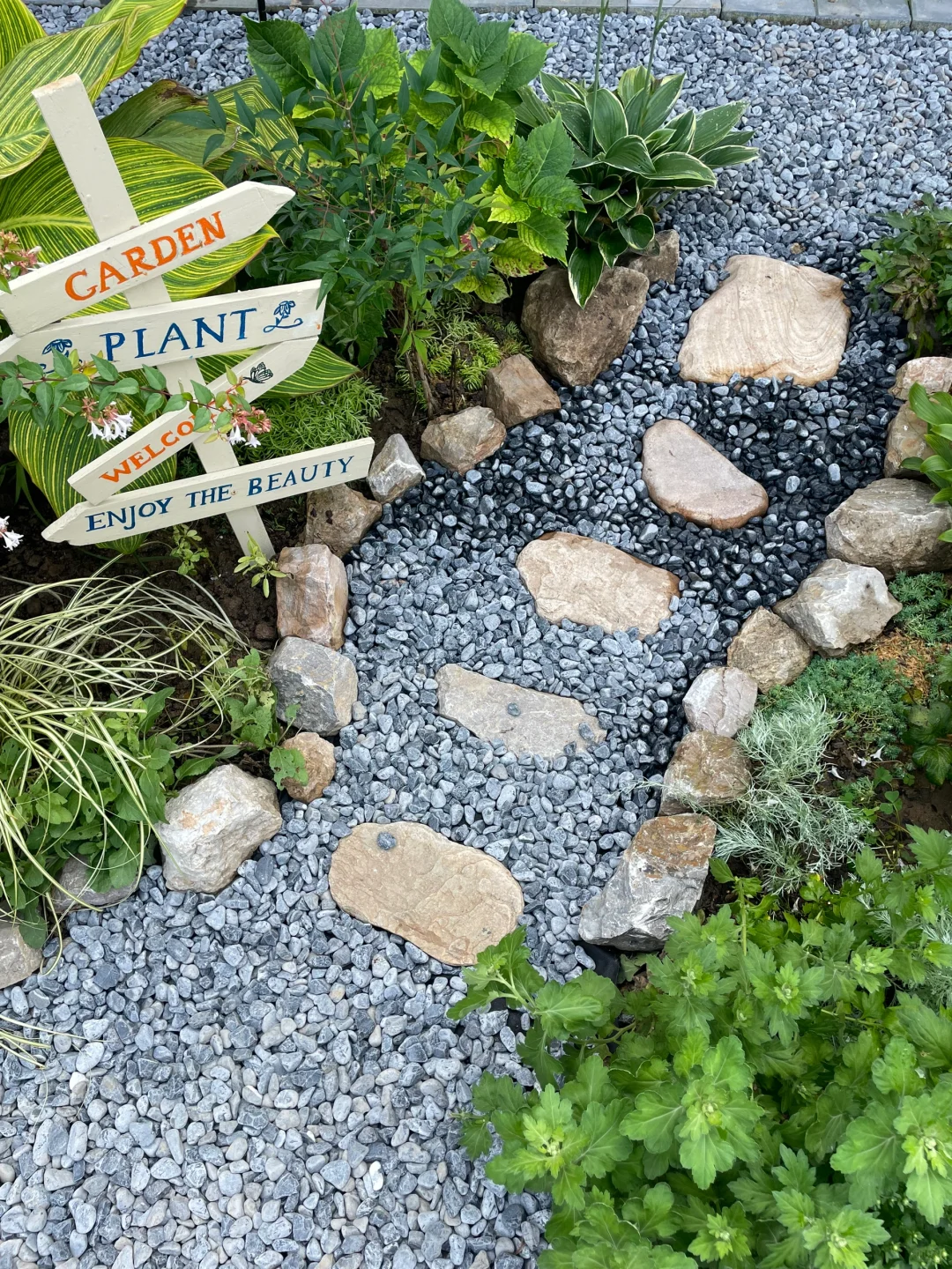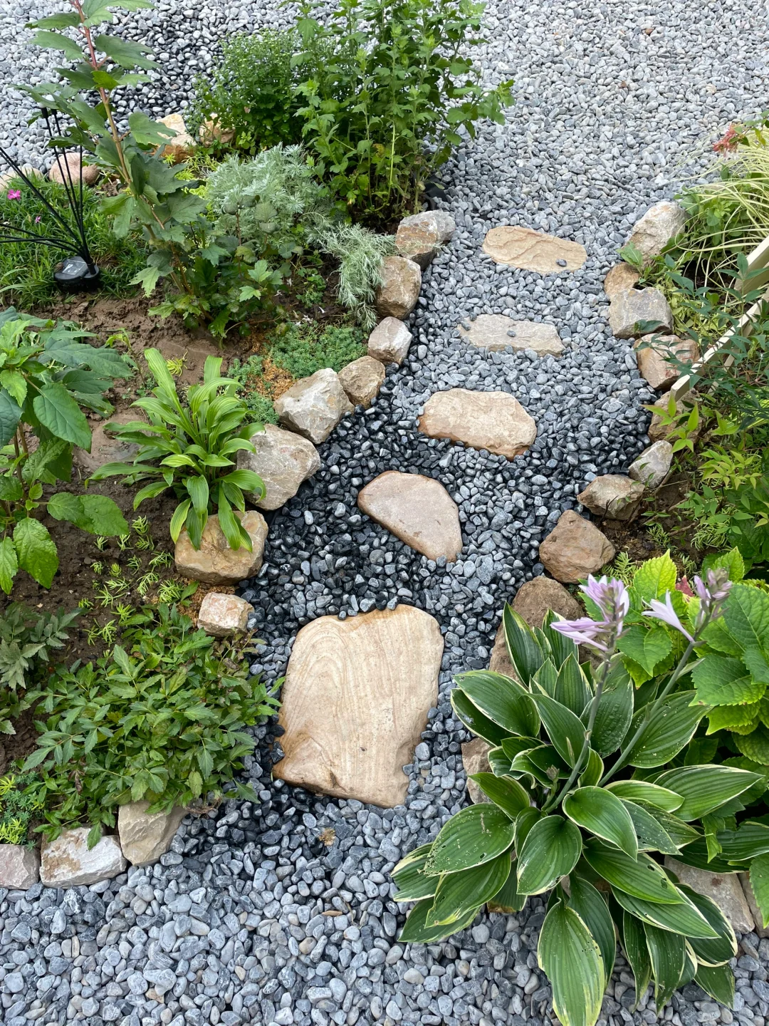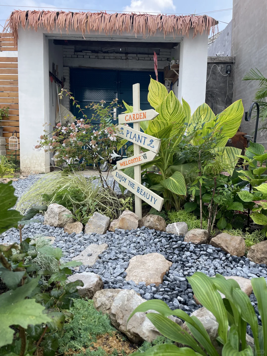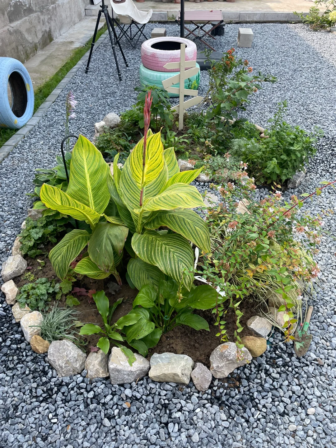 刚刚😍把花池一分为二,又开辟一条石子小路