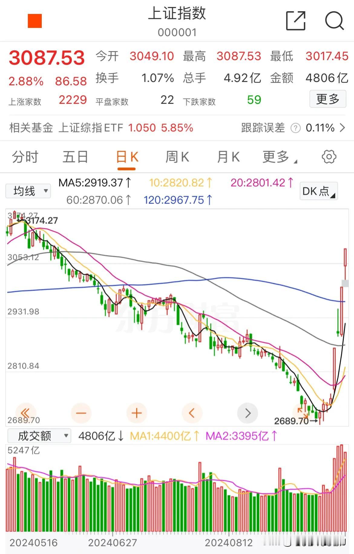 无论是成交量的持续放大还是今天上午上交所系统因为委托量暴增而导致崩溃都在说明场外增量资金在跑步进场,所以牛不牛的咱也不说了,自己判断吧!