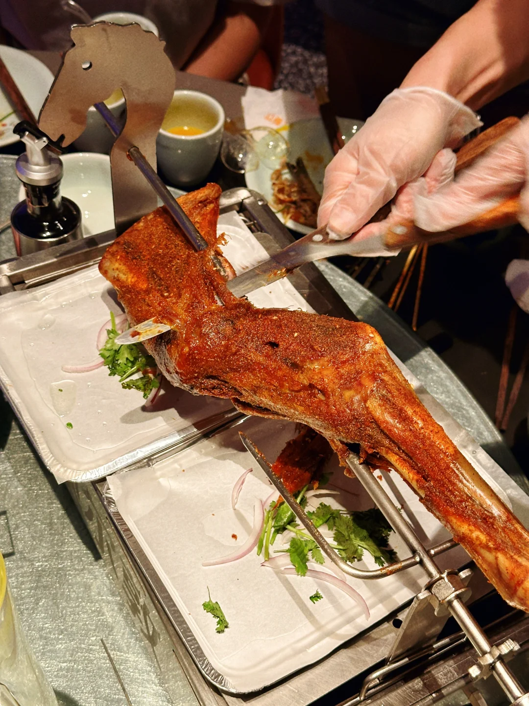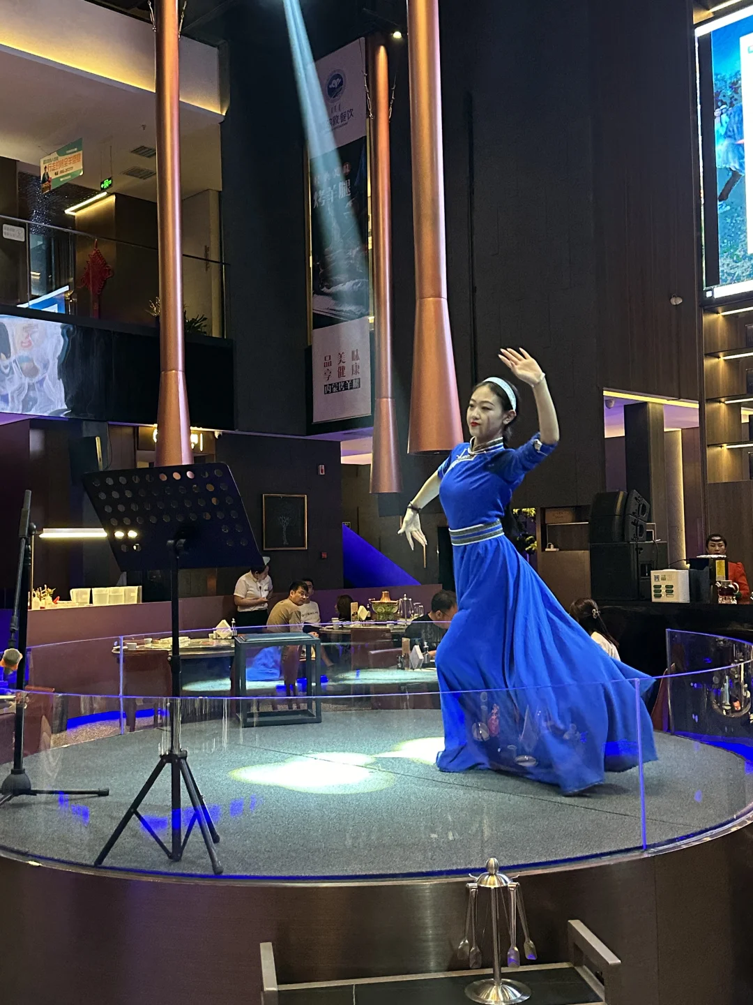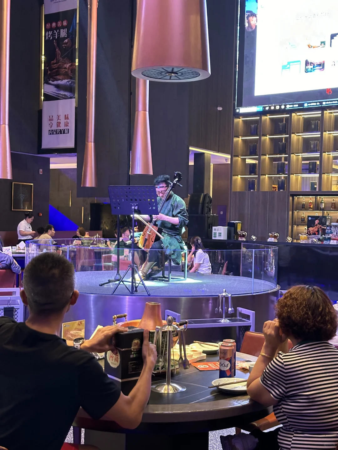 咱就是说之前去过万象城店的额尔敦 但是巨鑫国际的这是第一次。 进店就吃惊住了,这个挑高简直了,上下两层的设计,一层中间部分设计了舞台,这里吃饭还能看到蒙古族的唱歌跳舞以及马头琴的演绎,简直就是把草原风情拉满了!! 今儿咱主要是吃烧烤嘛,来自蒙古的新鲜肉类,直接就感受到了蒙古的烤肉的热情!肉很厚实,现烤的口感就特别好,以前只吃过他家火锅,没想到烧烤也这么棒。 烤羊腿给我吃嗨啦!片下来的羊肉用小饼一裹, ➕葱➕辣椒🌶️,香拽了‼️