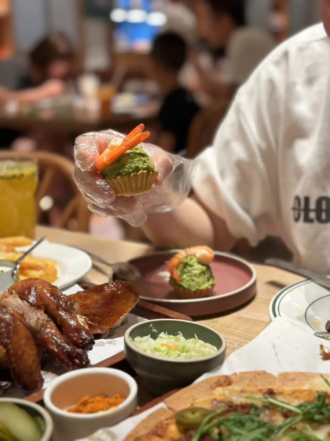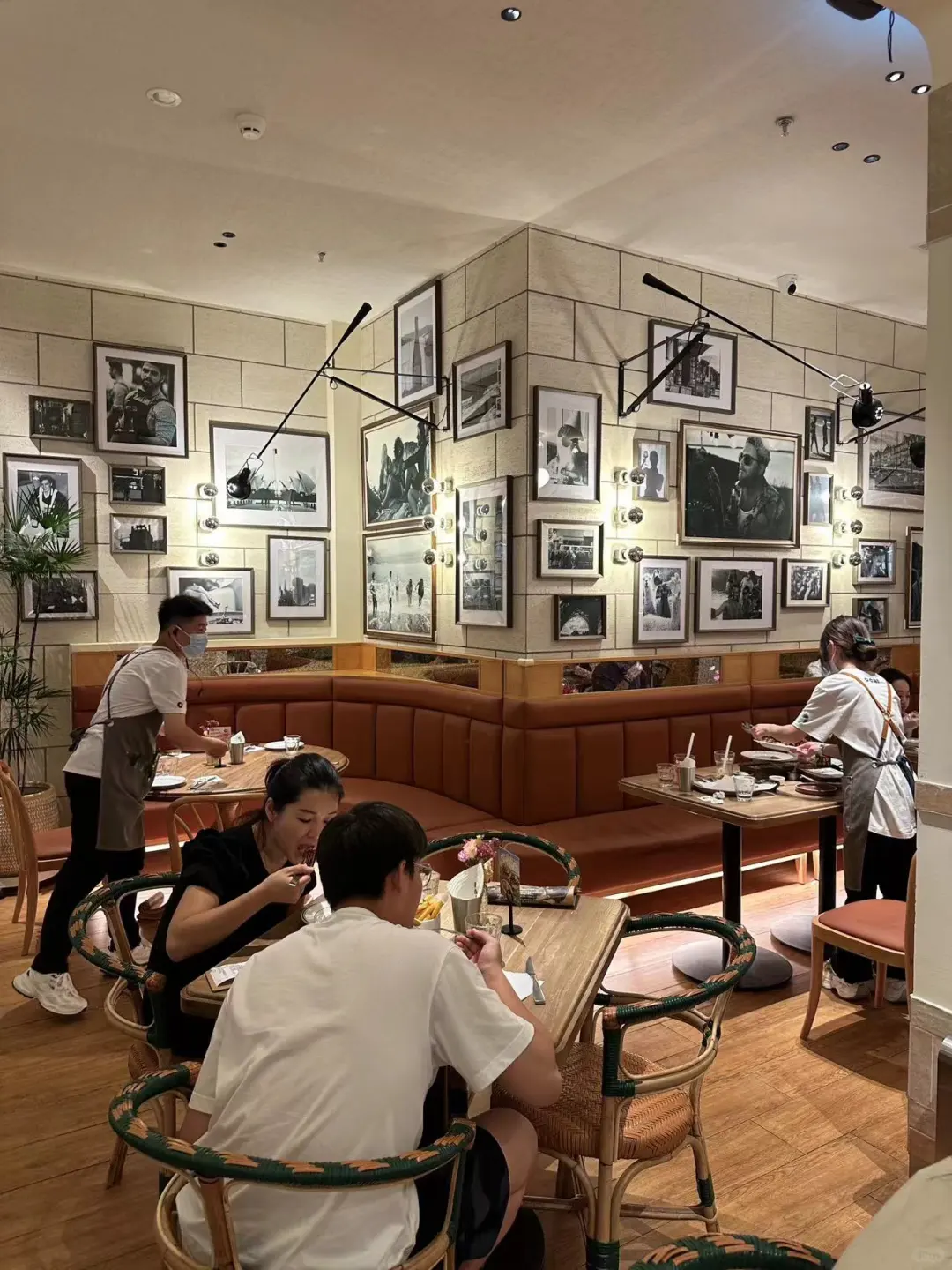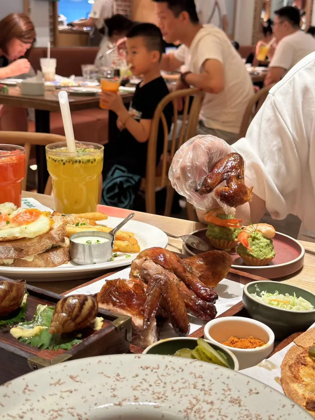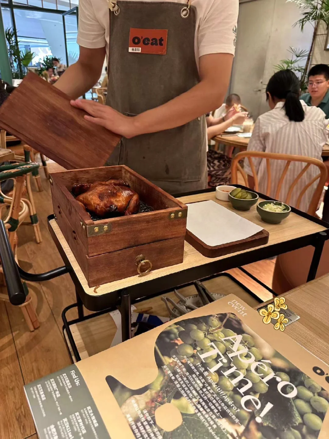氛围感满满,拍照超出片 太chill了 绿植营造一种身处异国之感,大大的室内落地窗,吃饭还可以看着街道外的人潮涌动 菜品颜值高还好吃,味道一点也不糊弄! 不是谁都能做得出来 非常适合周末和朋友约个晚餐 推荐菜: ✔️BBQ猪肉三明治 ✔️无花果叶烟熏熟成春鸡 尊嘟跟图片一模一样!好吃不腻! ⭕️熟成春鸡🉑仪式感拉满! 小推车推过来的时候,惊喜满分 千万不要让饿肚子的小宝点餐,量太大了!! 吃不完根本吃不完