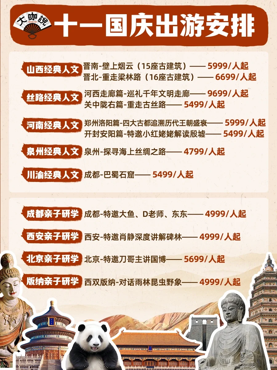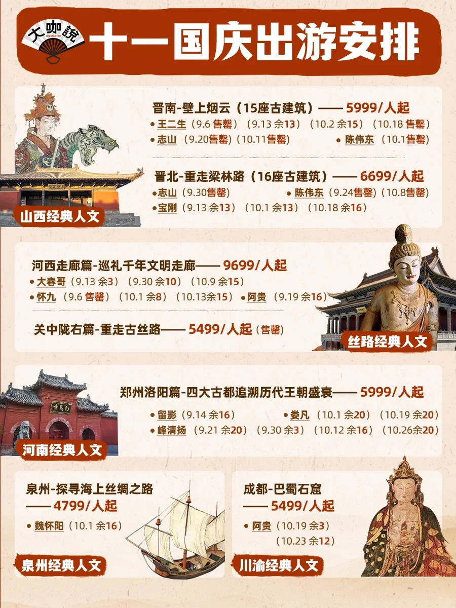 团期:9.14、9.21、9.30、10.1、10.12、10.19、10.26