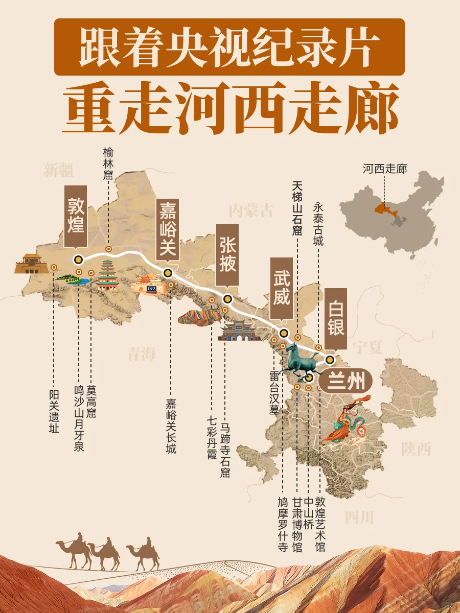 下面再给大家分享一条经典的游玩路线!直接玩翻河西走廊!🌄