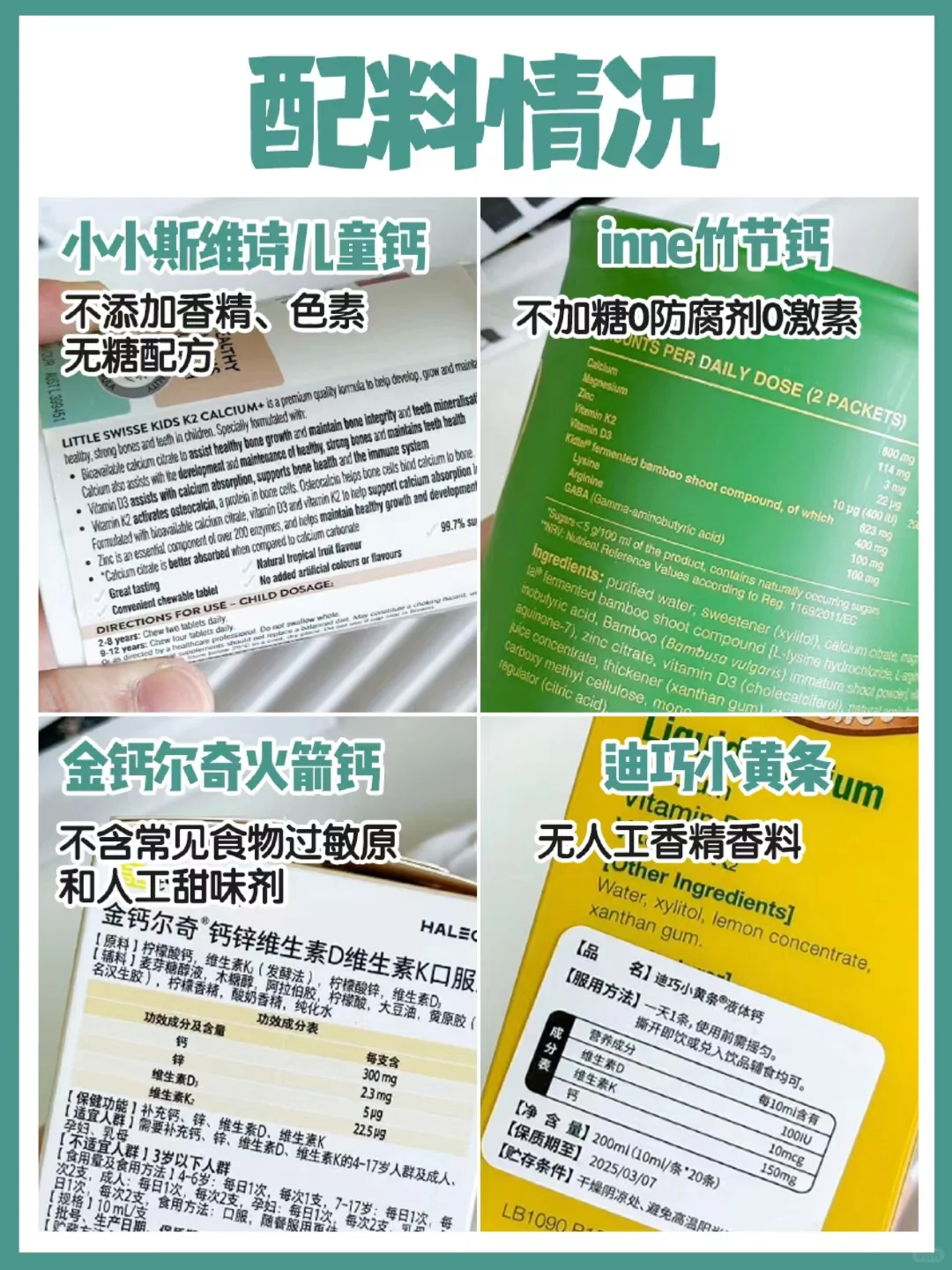 很多宝宝钙在配方上会添加一些影响成长的物质,长期摄入会影响宝宝健康,所以一定要选择配料表干净的,避开香精、色素、糖等添加剂。