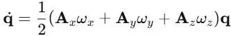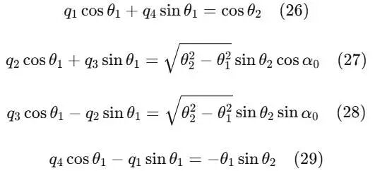 这看似四个方程三个未知数,但由于四元数归一