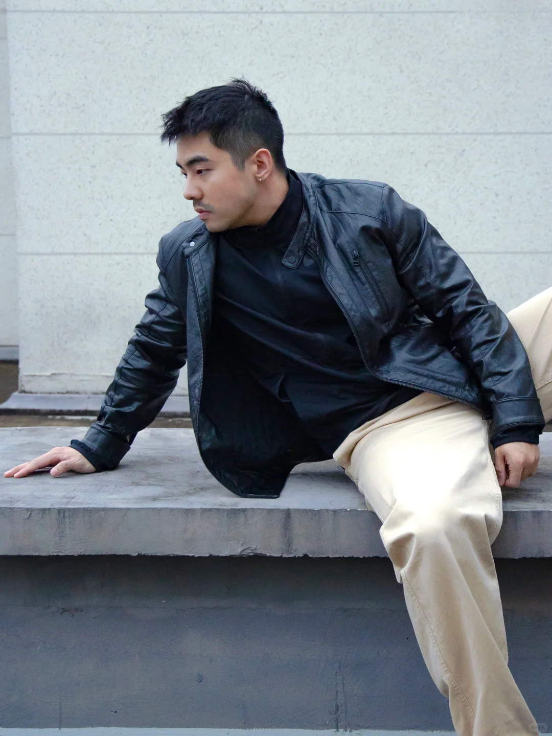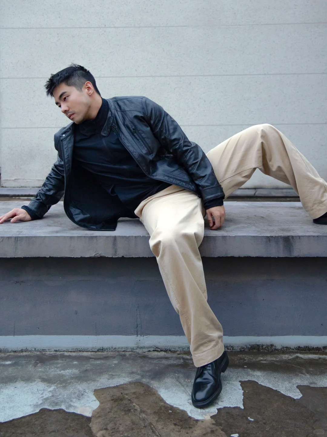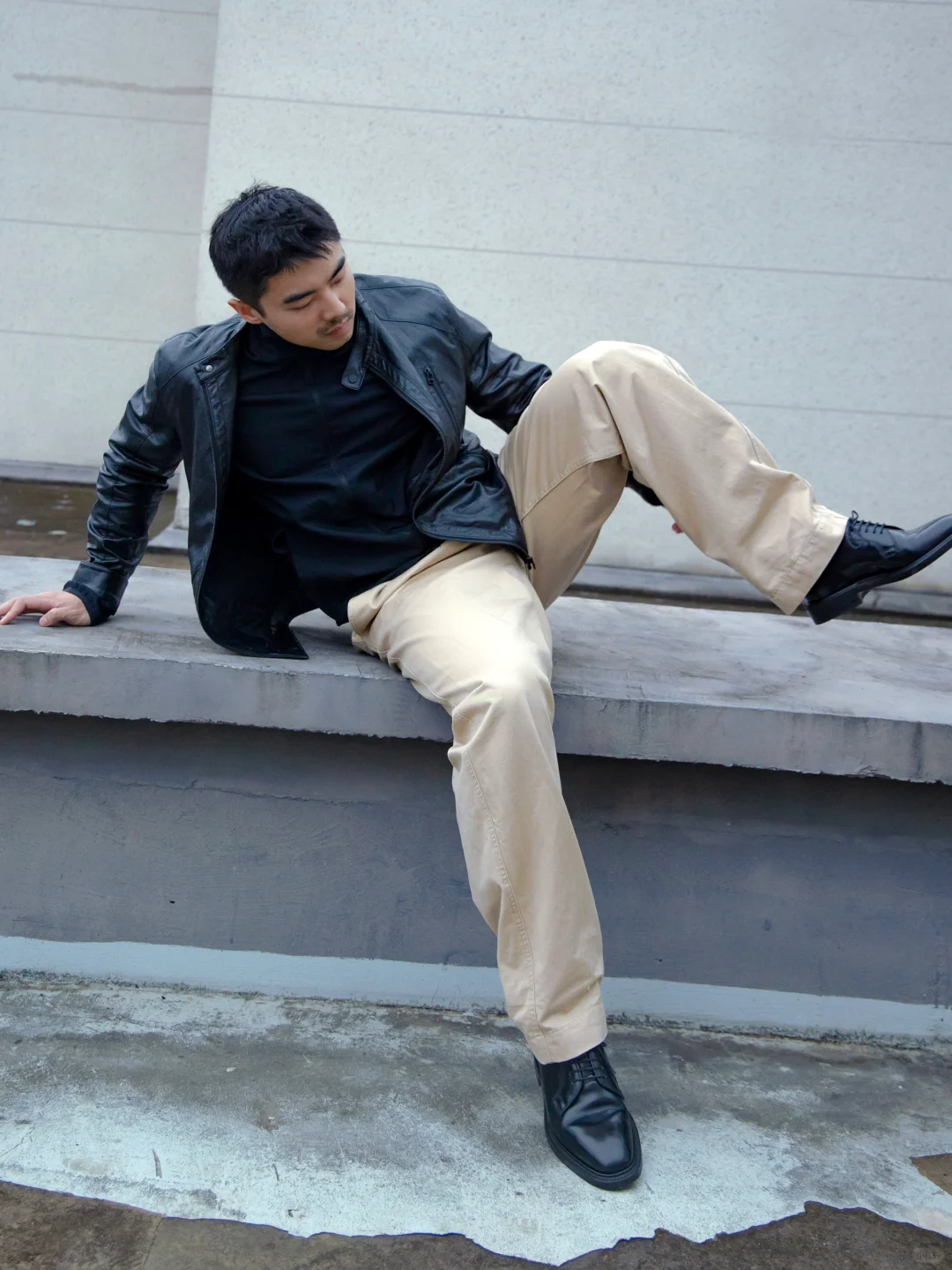 一到秋天就想穿皮衣,虽然没有运动衣舒服但够酷。我个人很喜欢上黑下卡其搭配,皮衣、卫衣、夹克、羽绒服我都这样,提供一个百搭简单色彩方案。