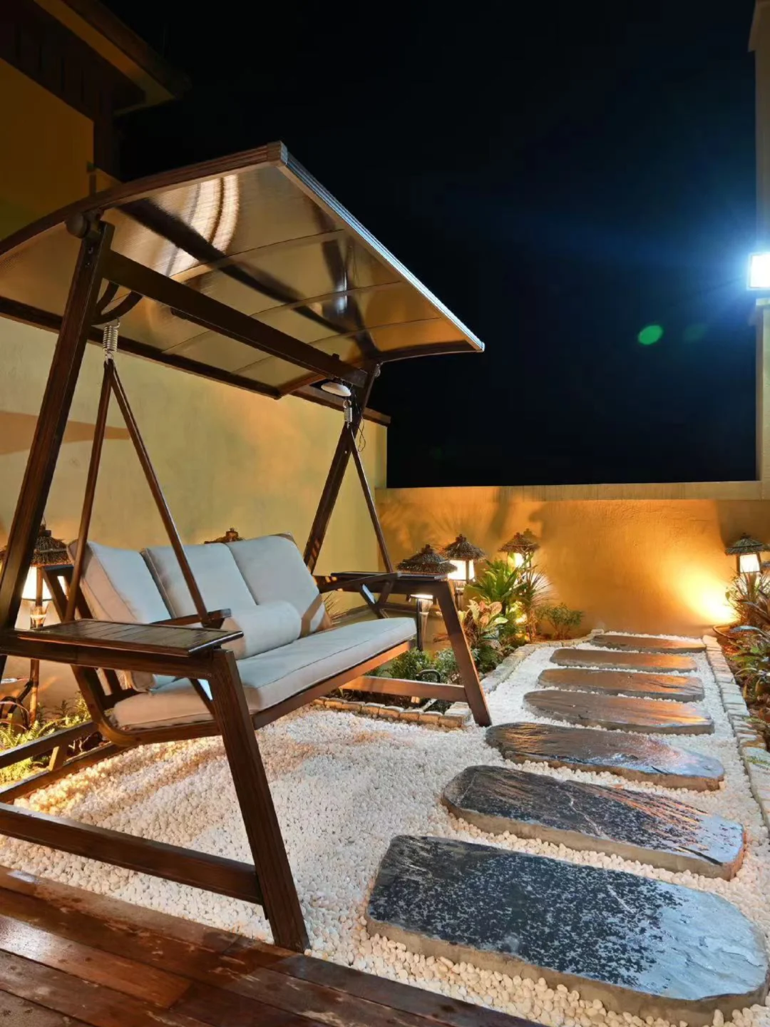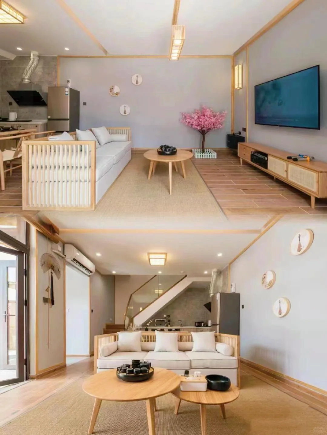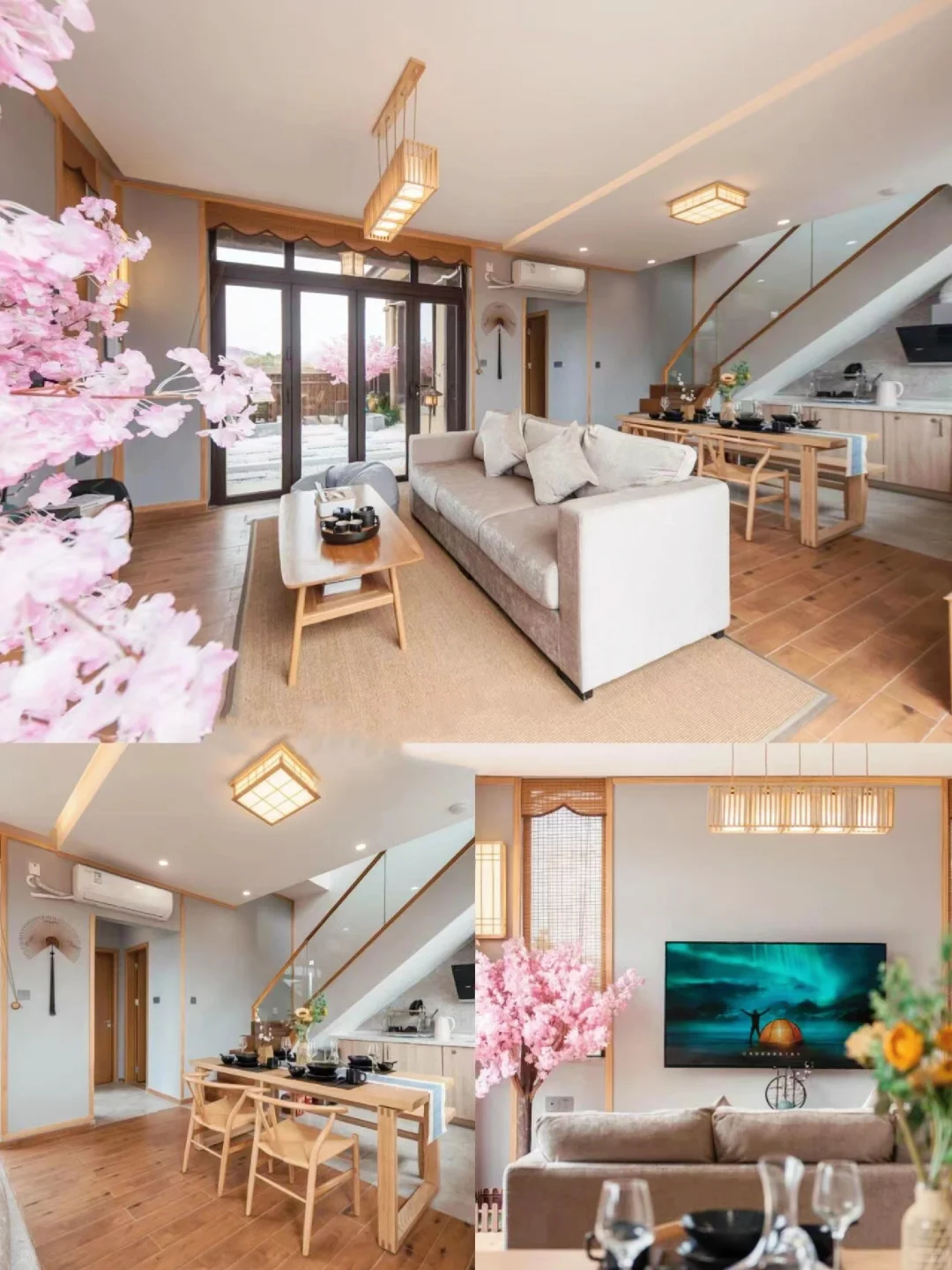 别墅不仅有日式的庭院,还有日式的客厅、房间,竹栅、石墙、🌸樱花、挂画、木桌椅,🉐️满满日式风情~