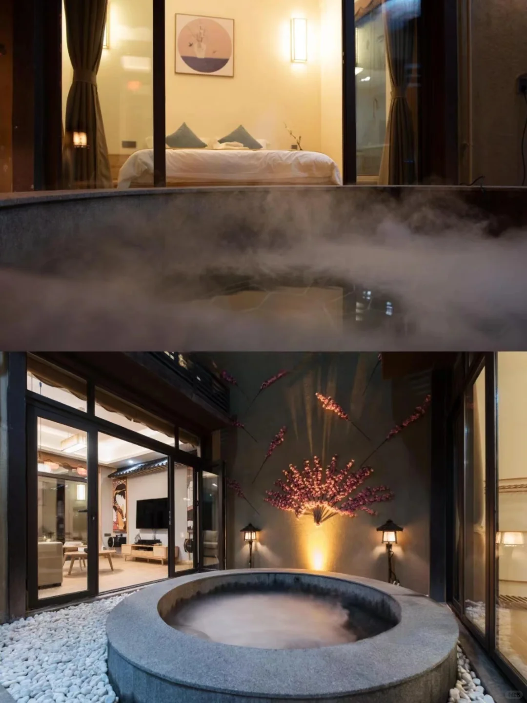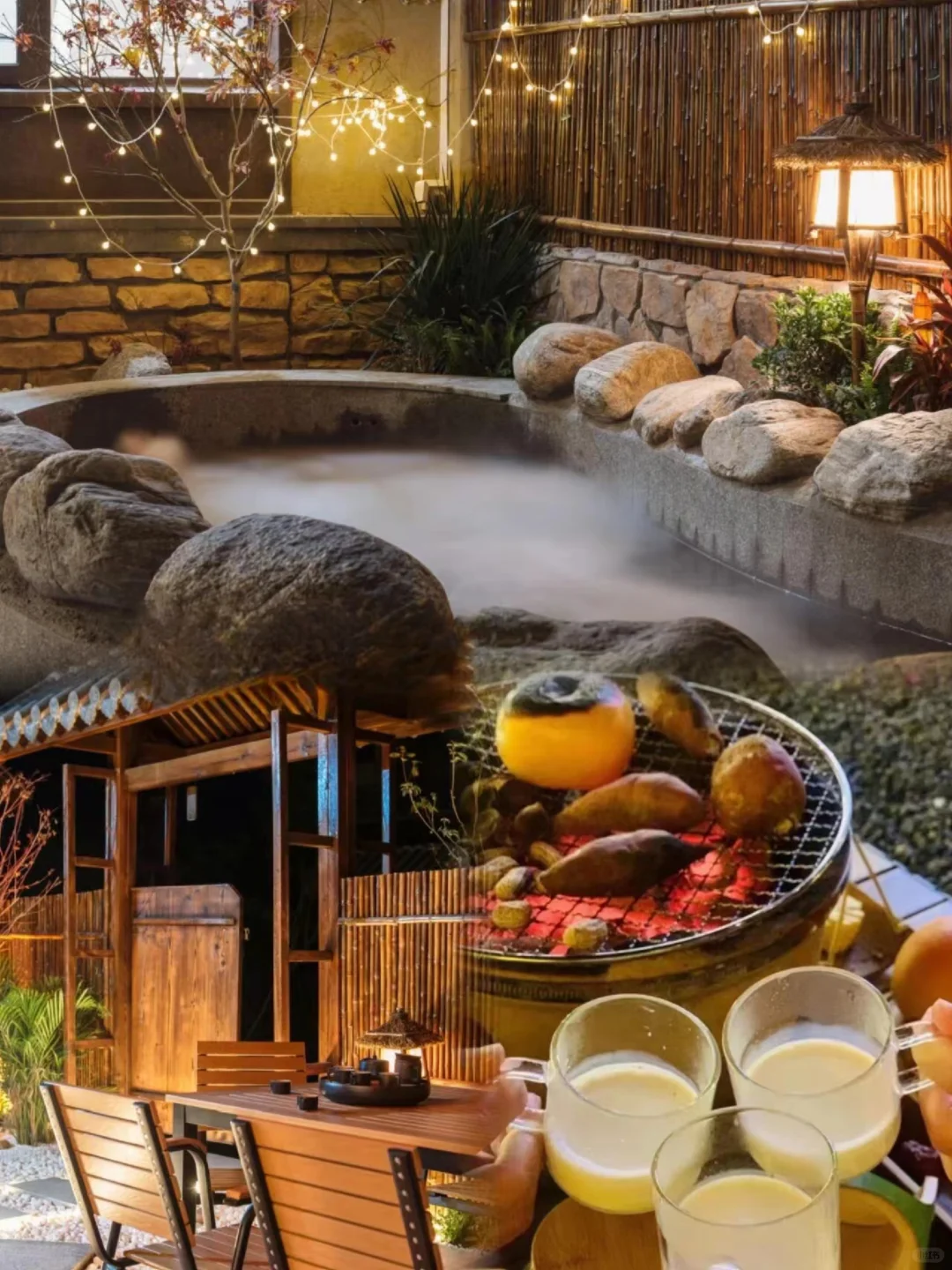 民宿有个日式风格的♨️温泉泡池在庭院,秋冬暖暖地泡上一池温泉太舒服了