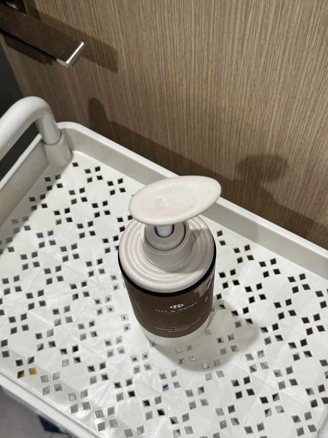 就这个固发的小菩萨洗发水。。。 我很钟爱的offrelax锁发瓶,这个是真感觉像给头发上了一把锁一样🥹现在地漏、枕头哪哪都没什么掉发了,以前真没有用到过这种效果。。。。。熬夜星人狂喜哈哈哈!!!!