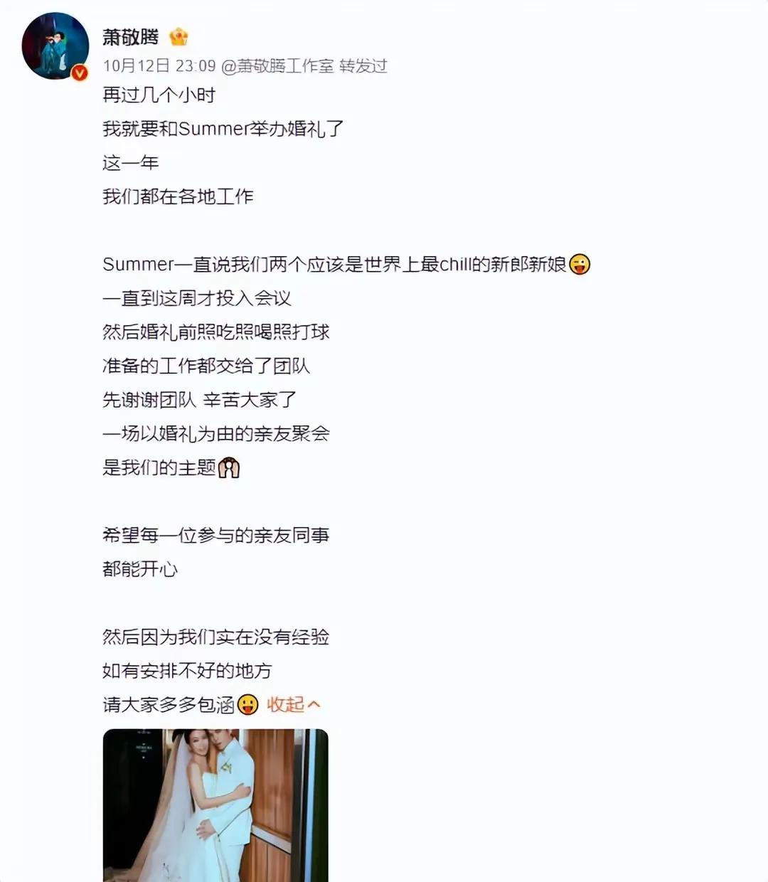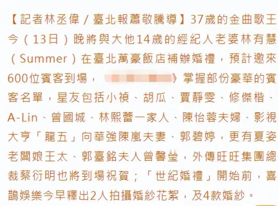 今天萧敬腾林有慧大婚!虽然两人年龄相差了14岁,但51岁的新娘保养得很好啊,新婚照看着没有很突兀的感觉,两人很有夫妻相! 优秀的女人并不缺人喜欢,但是任由自己颓废,不努力充实自己,就不一定有这种好运气了。所以想要有这种快乐,得自己是优秀的女人才能够拥有! 萧敬腾也很值得称赞,他是个有担当有责任心的男人,这个年龄差距,愿意负责的男人寥寥无几,这就是渣男和成功人士的区别。 爱情就该像这样,不带框架,不求完美,只要两个人真诚以待! 今天的萧敬腾真帅,他俩很配!从他出道二十年,林有慧一直陪伴左右,真心换真情,修得同船渡。这就是真爱脱离世俗的美好爱情。 所以,女人一定不要委屈自己,只要你足够优秀,总会等到自己的王子!最后,祝福萧敬腾林有慧新婚快乐,白头到老!