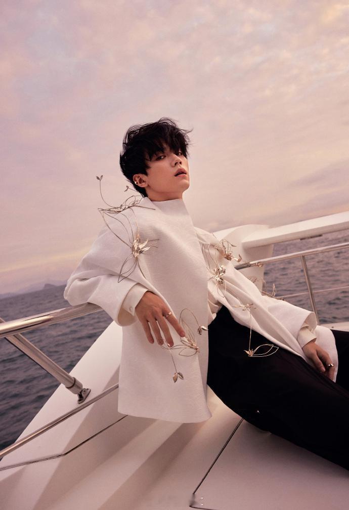 #周翊然白西装上有立体金属花##周翊然白西装游艇大片# 周翊然的VOGUE出发图