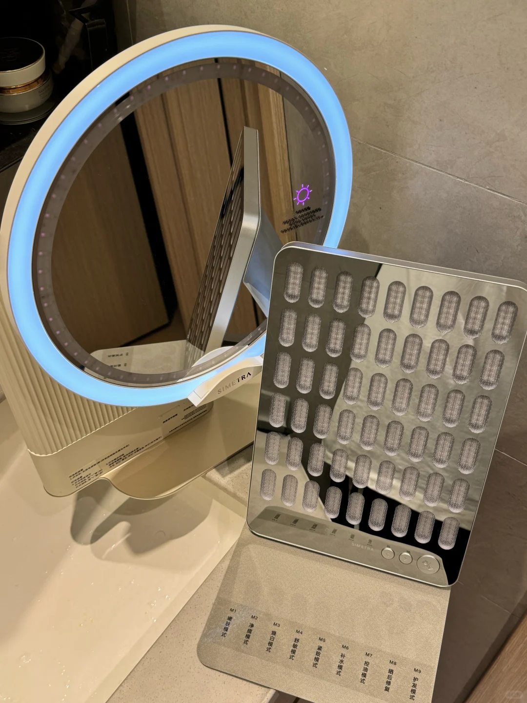 而且牛奶光对人眼没啥伤害,我一般都是边照变玩手机。还带着超级大的镜面设计也能作化妆镜使,放梳妆台还有高级上档次感觉哈哈哈!真的白白二绝🥲……男人可以分开再找但是没你俩我是真不行!!!!!