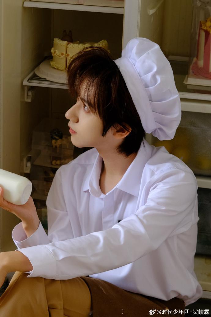 #贺峻霖甜点师look##贺峻霖厨师帽随拍# 贺峻霖的甜点师look充满了创意和