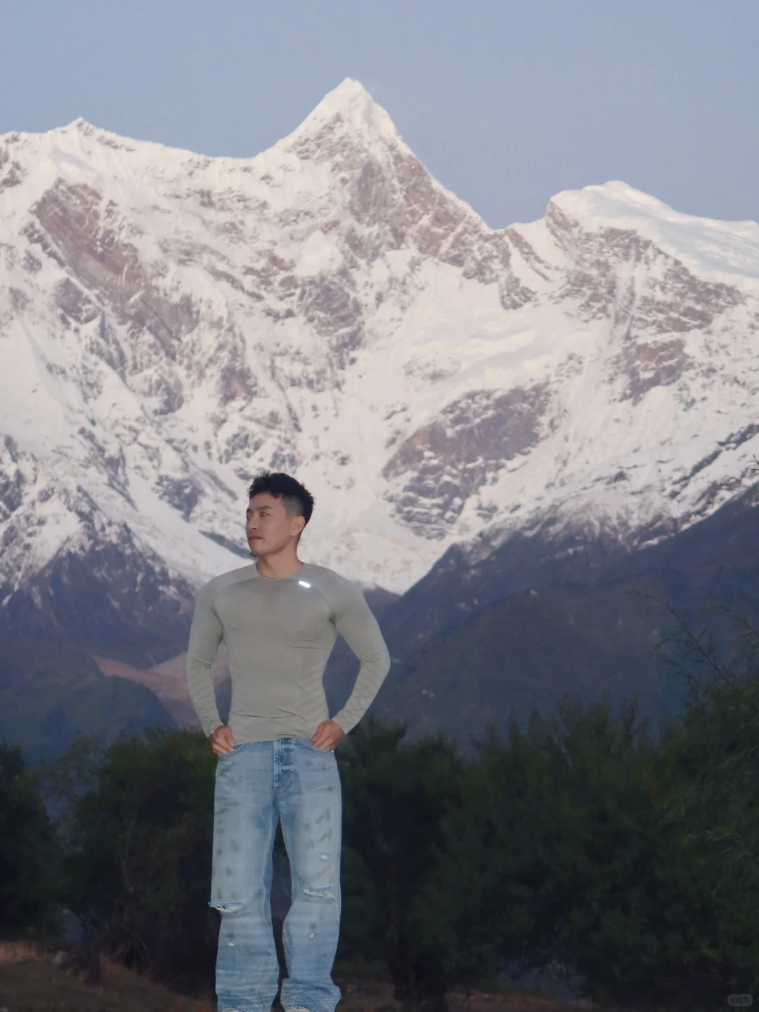 日落后的南迦巴瓦峰美丽到让你说不出话 也真的是日照金⛰️,🌞落银山!