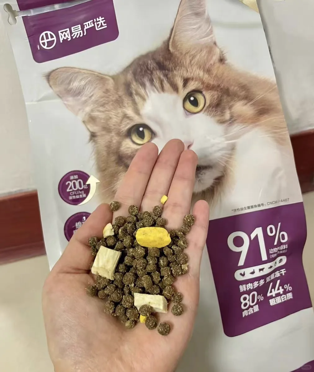 我家复购最多还是网易严选家这款冻干双拼猫粮,真的是给自家猫吃过很多袋才发言!!!无论是从优质的配方还是适口性方面,全都没啥问题。原料都是鲜肉+益生菌+果蔬+维生素,营养价值很高;还添加了冻干,不仅口感没的说还能美毛!!!不用怕毛毛漫天飞了!!! 我家猫咪已经吃了好几袋空袋了,现在的毛发那叫一个油光顺滑,摸起来真的太舒服了。