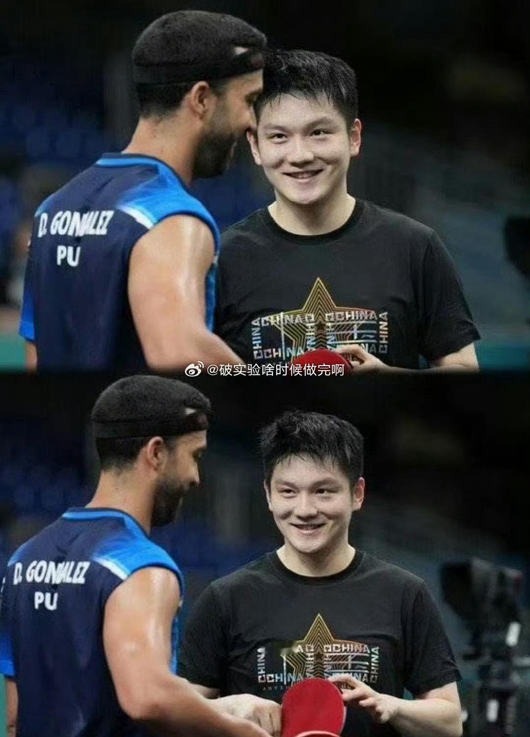 不同的赛场,有着同一样的笑容!治愈系笑容[太开心] #樊振东参观了皇马更衣室和主场#