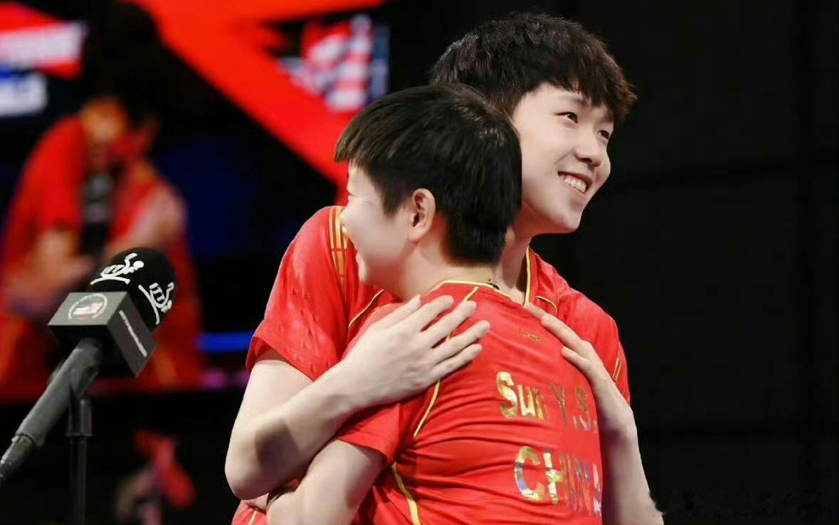 来自世一和世一的拥抱,我们顶峰相见[努力]#孙颖莎王楚钦仍为WTT赛事冠军榜第一
