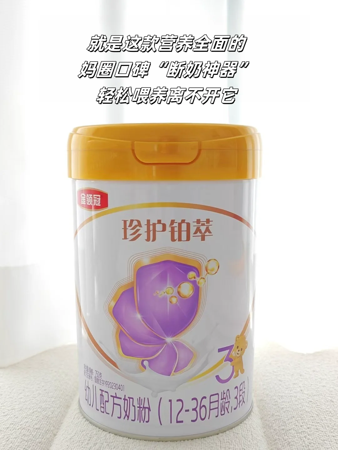 宝宝出生后,因为不能长时间亲喂,也选择了它家的✨宝宝奶粉金领冠珍护铂萃开始混合喂养,营养全面,每次感觉宝宝都喝不够,喝到现在宝宝,就没有生过病,胖乎乎的可招人喜欢了!