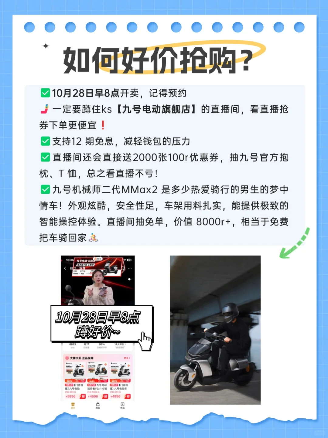 10月28日早8点开卖,一定要蹲住ks【九号电动旗舰店】的直播间🤳