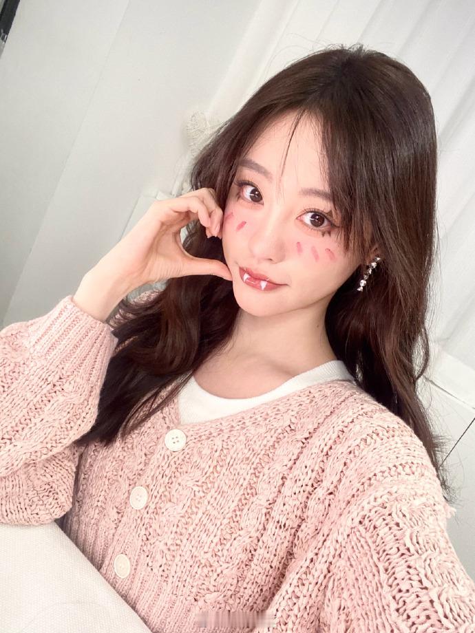 #祝绪丹新妆容Get##祝绪丹晒万圣节新妆容随拍# 祝绪丹的万圣节新妆容,粉色毛衣与小恶魔的组合,充满了创意和趣味,让人对她的时尚品味佩服不已。