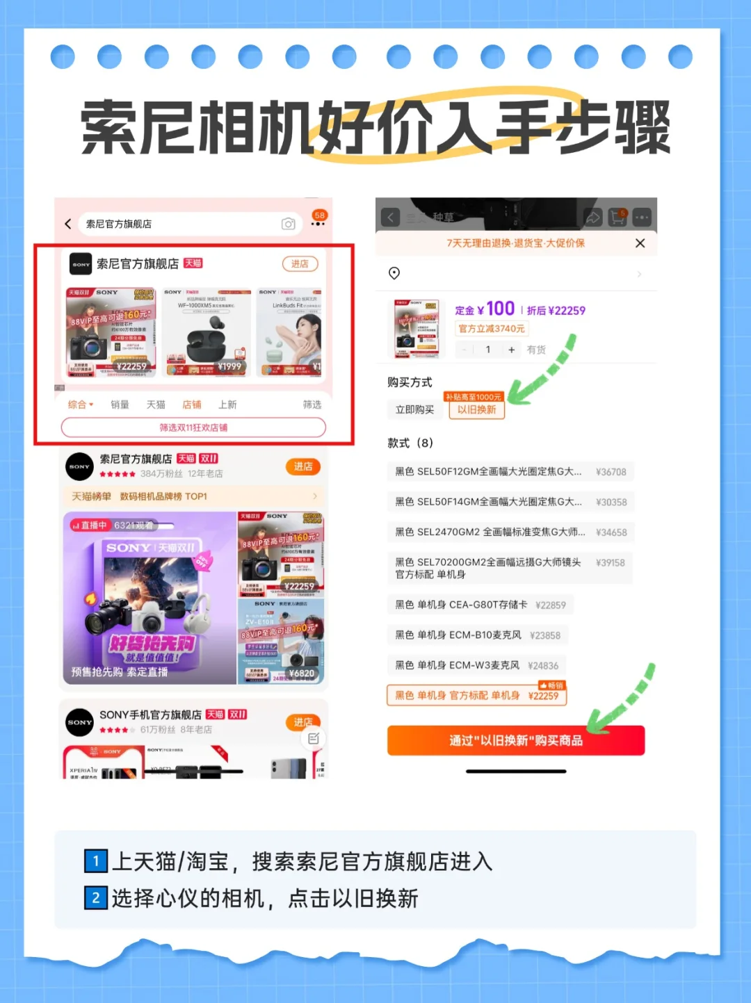 京东旗舰店和天猫旗舰店都能以旧换新,这里以天猫索尼官方旗舰店为例,手把手带大家操作一遍