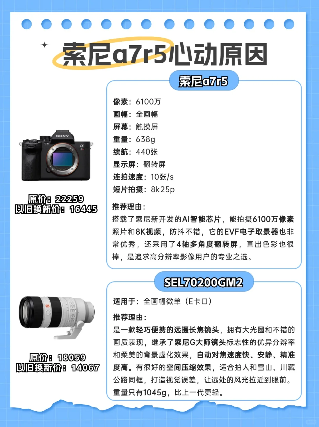 原价22259r,旧相机抵扣4914r,以旧换新专享补贴900r,16445r拿下!