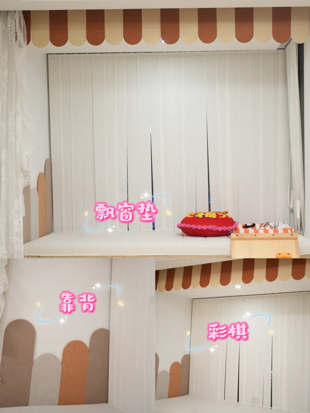窗台买了飘窗垫 贴了靠墙软垫 做了性价比超高的星球灯 搭建了攀爬架 大家看看还需要添点什么呢