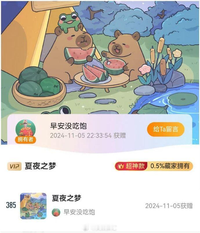 胡夏与早安的友谊在卡皮巴拉皮肤的传递中更加深厚。他们的故事,让人相信真正的友谊可以跨越一切。