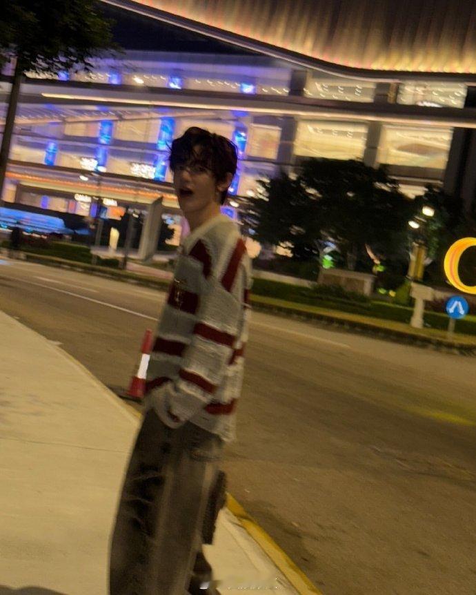 #章昊条纹毛衣look##章昊更新澳门夜景随拍# 章昊穿着条纹毛衣,在澳门的夜晚