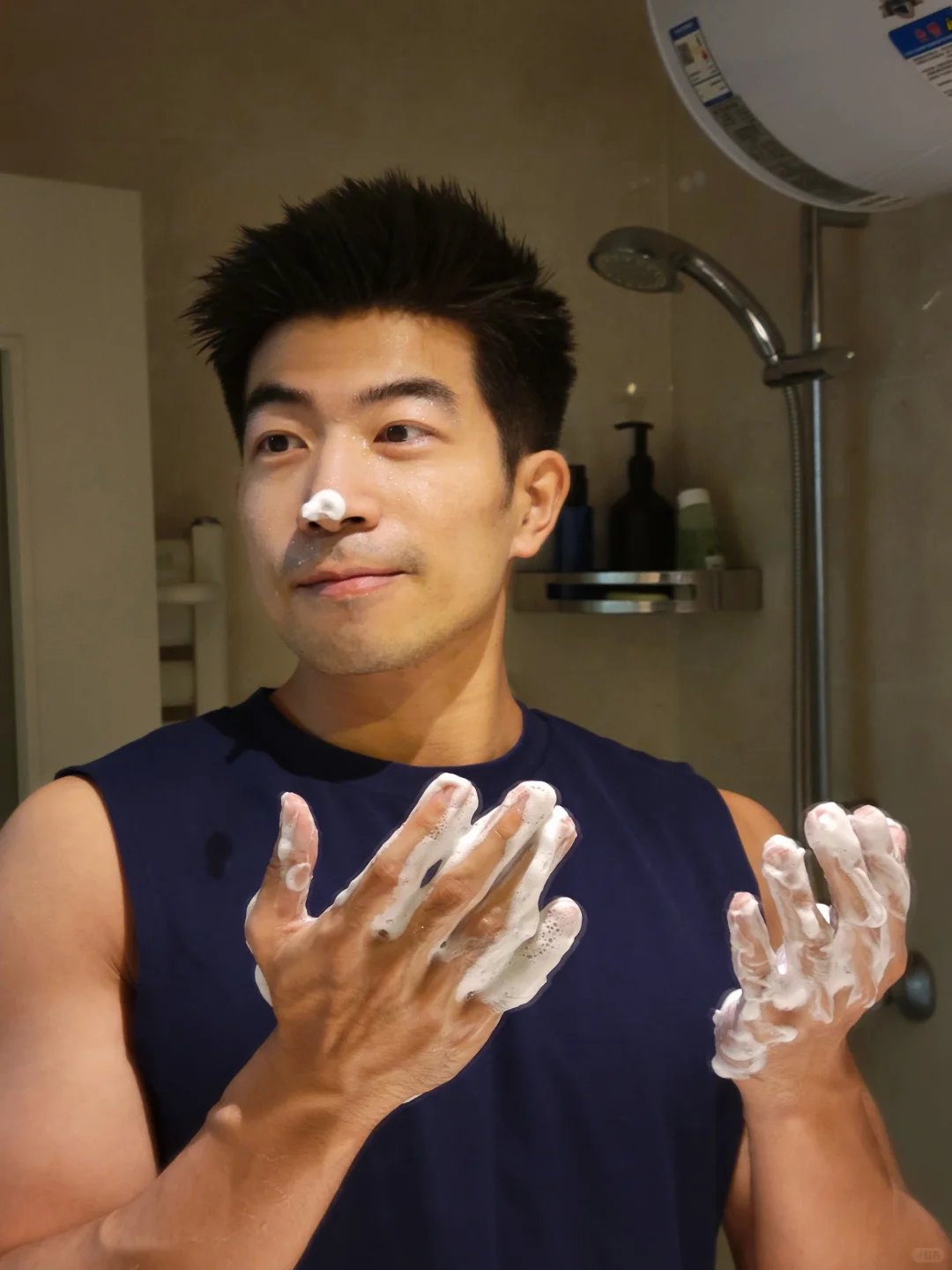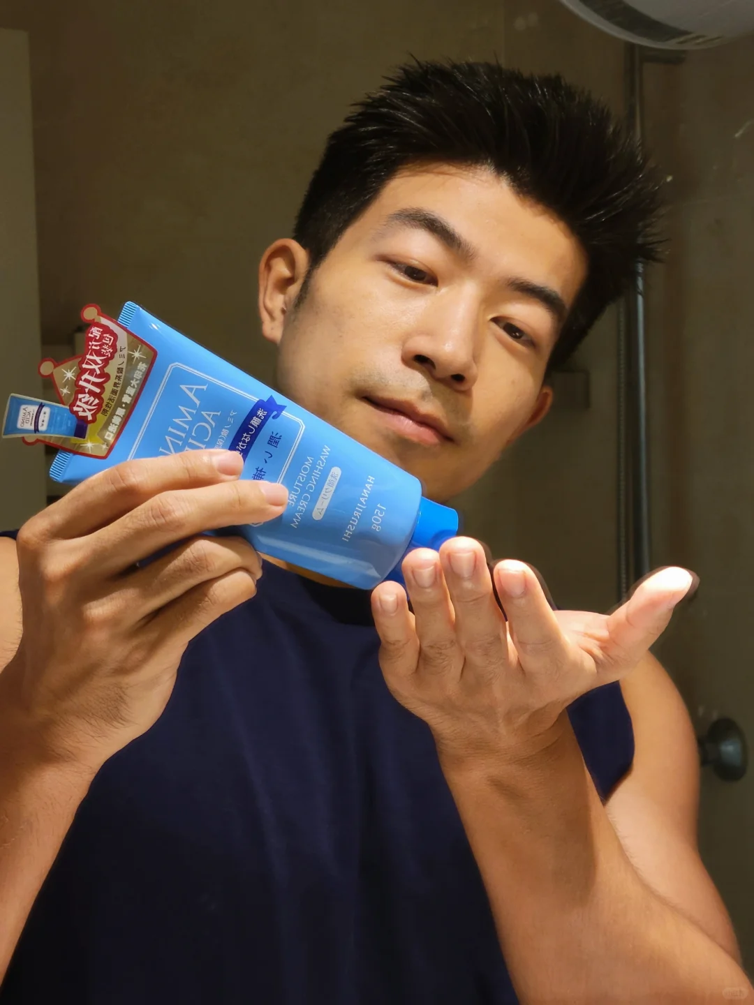 洗脸小tips:建议每次洗脸前先用敷面巾浸上热水在脸上热敷,把毛孔打开,清洁度更好。