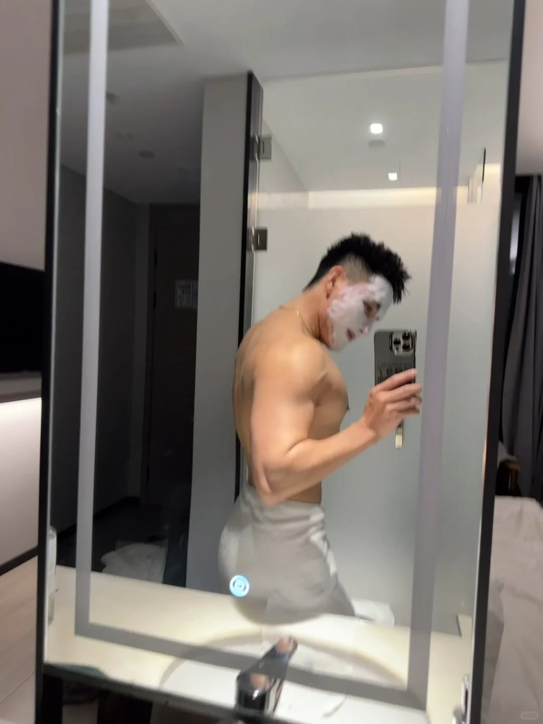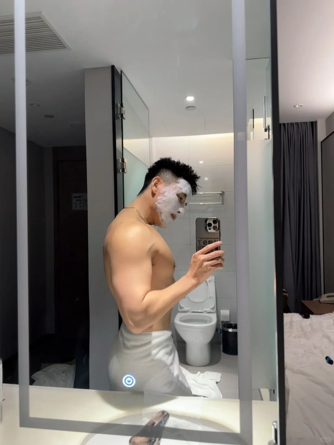 怼着镜子拍 浴巾 发一张照片记录今天 宅家拍出氛围感 宽肩窄腰