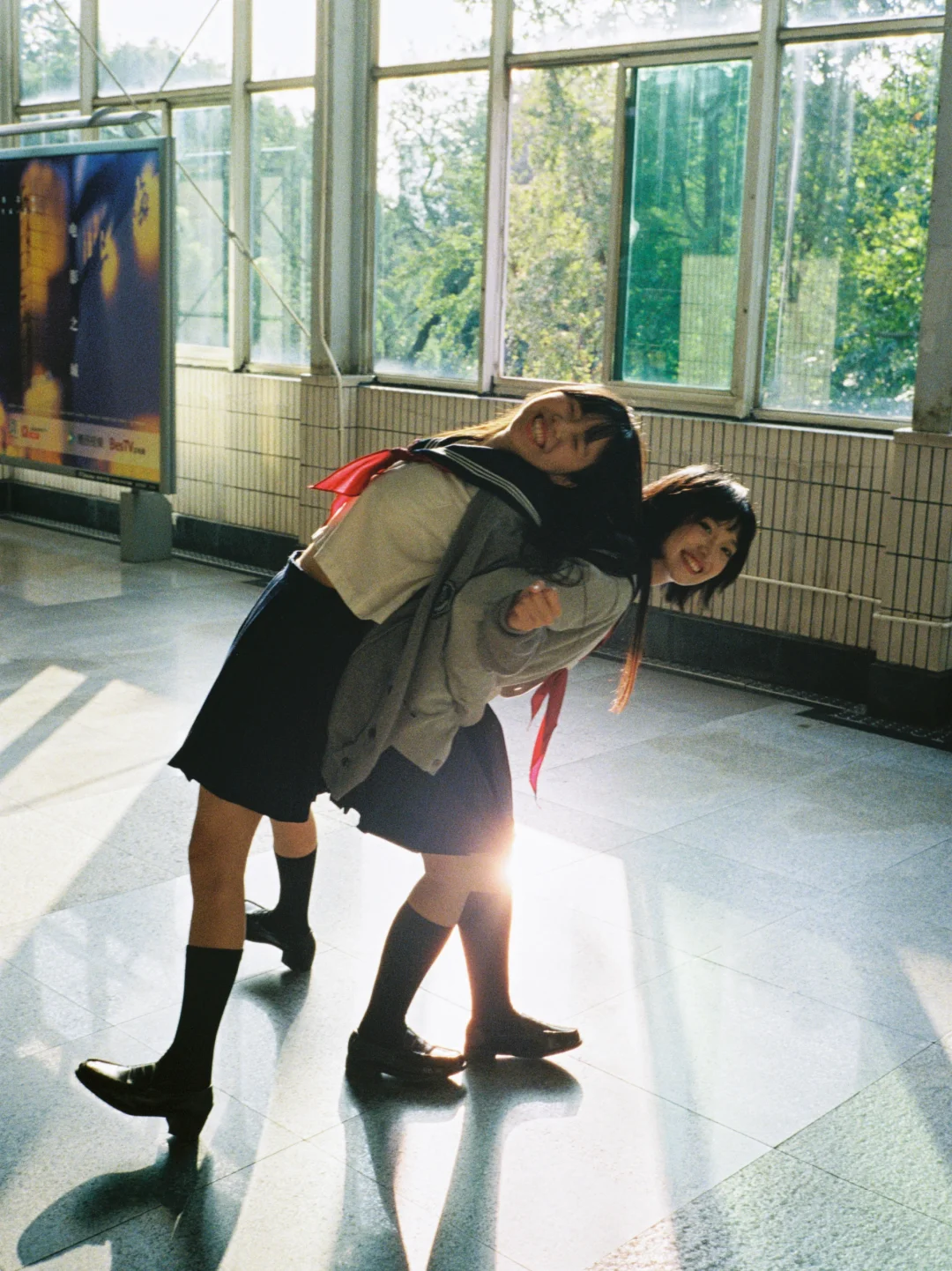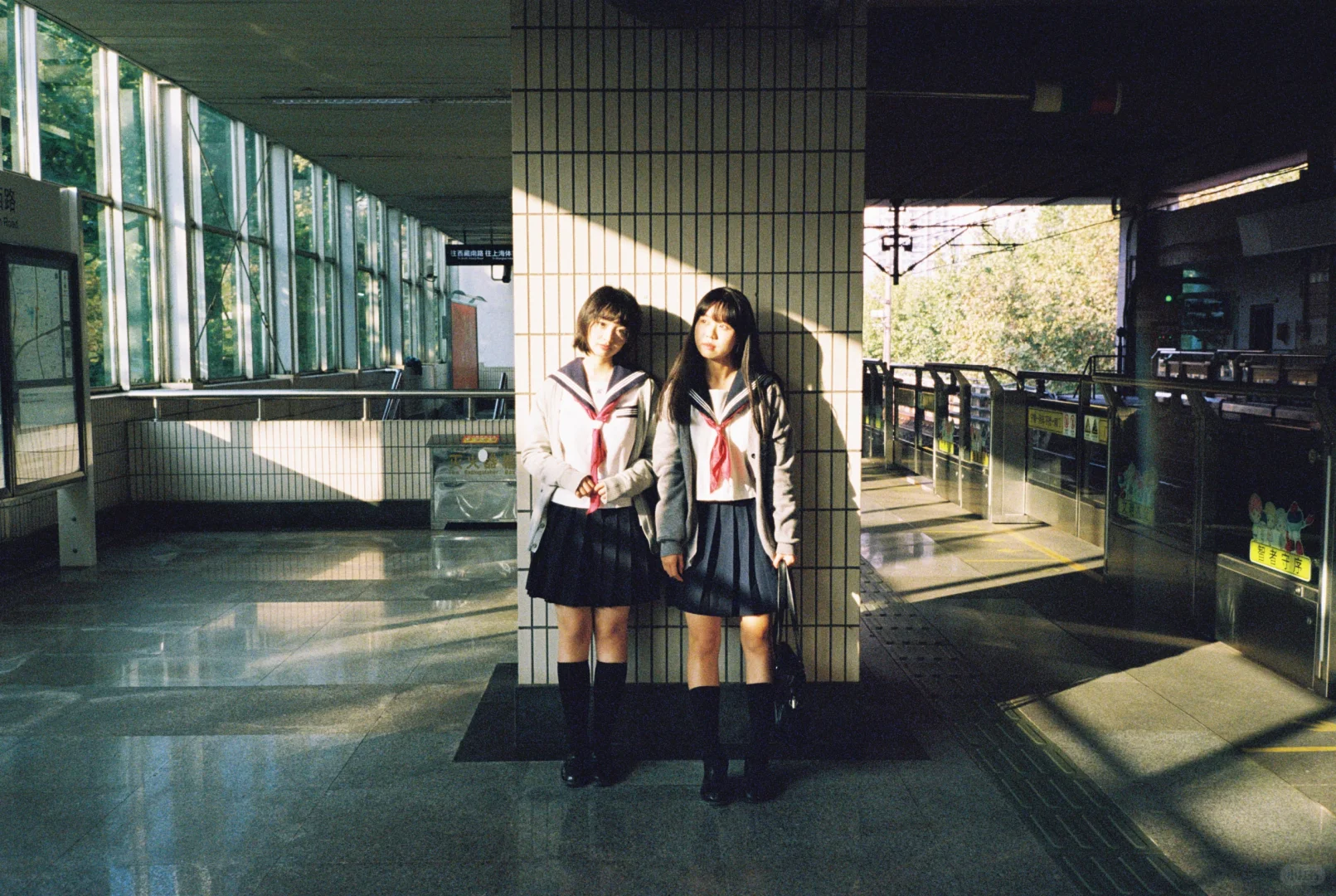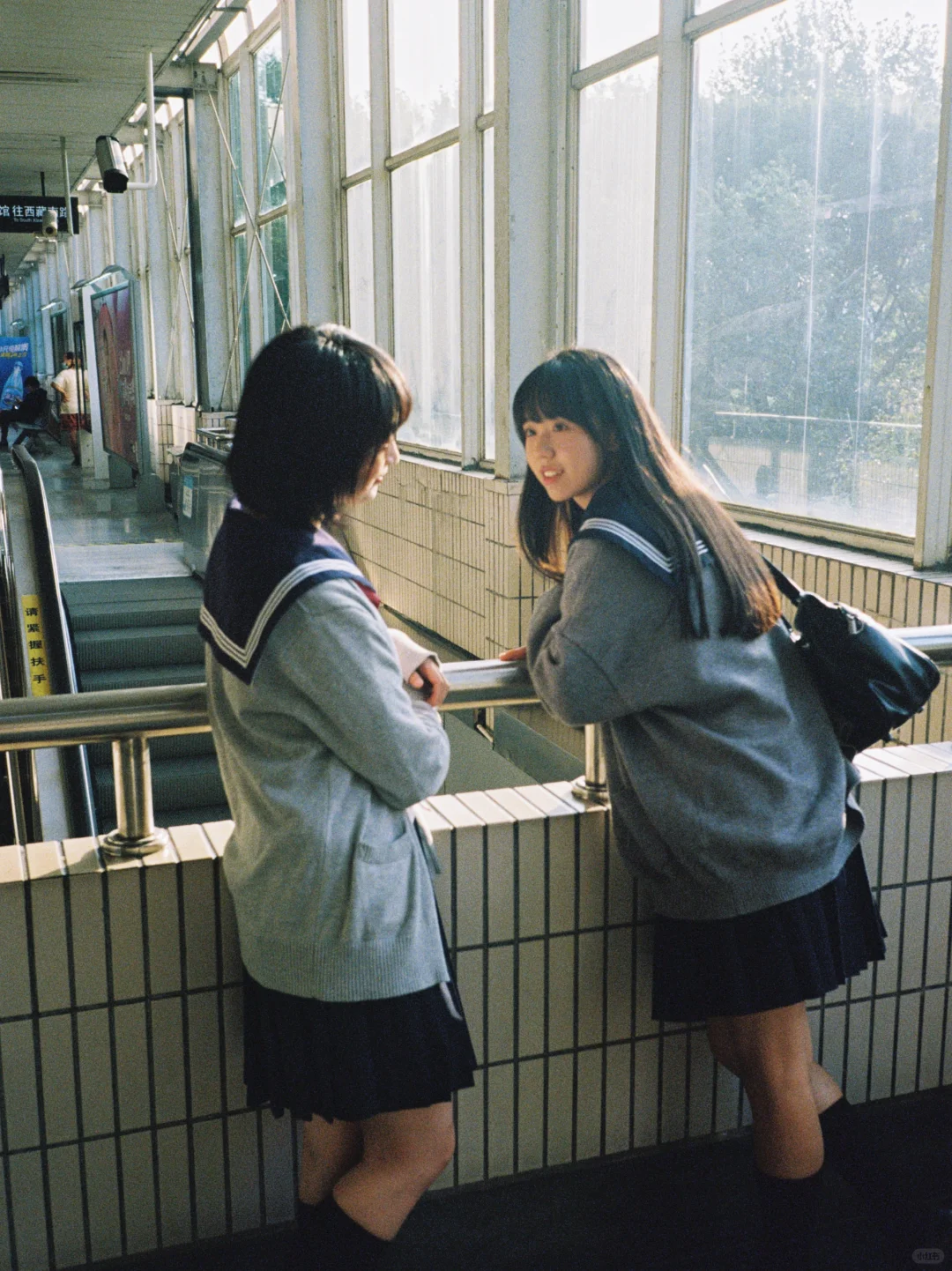 一起下课,一起在车站等车。