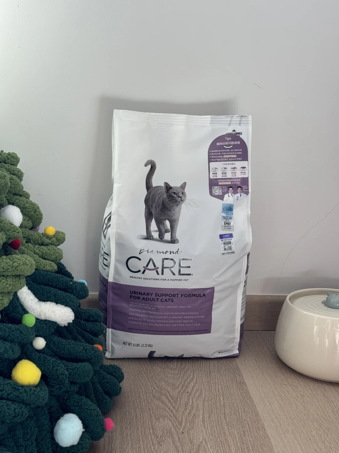 之前分享过壮壮尿闭的情况,有提到医生叮嘱吃泌尿猫粮。我们家日常在吃的是 Diamondcare 钻石泌尿猫粮。