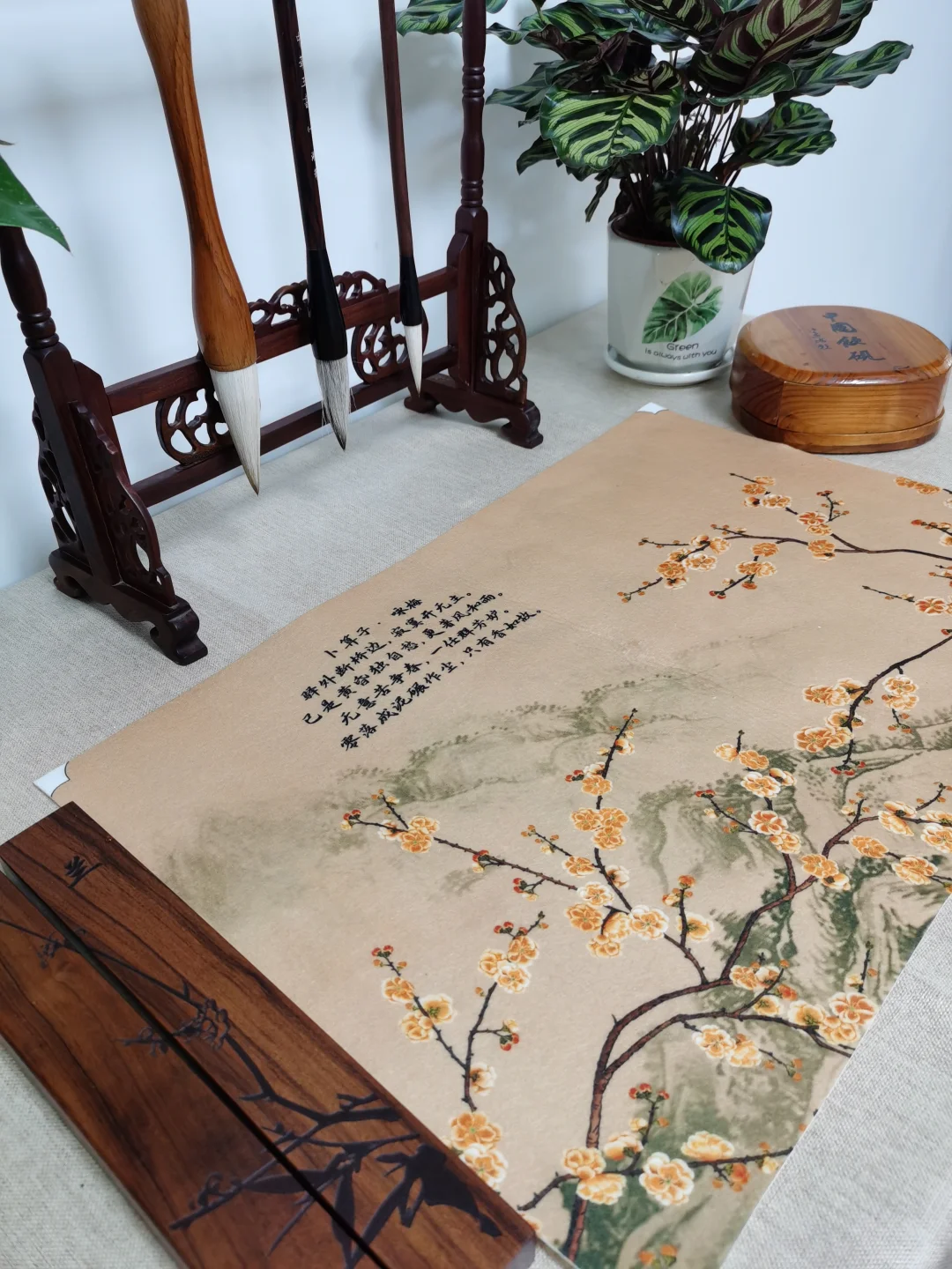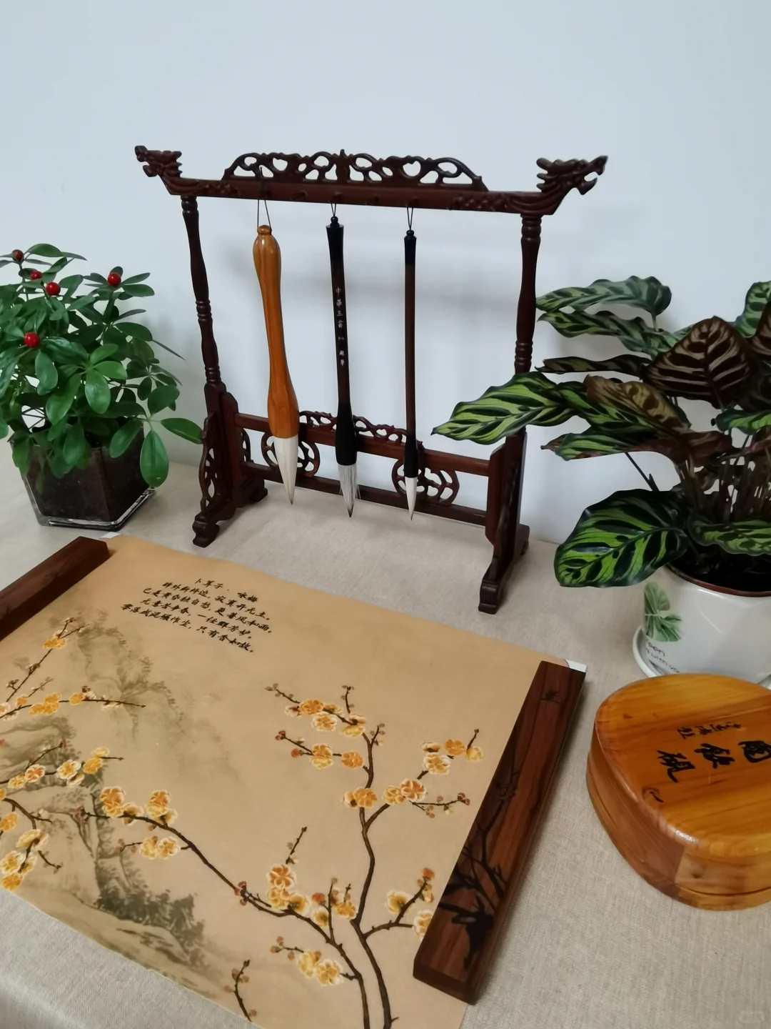 为了让书屋更有文化氛围,我还打造了“书法小角落”,方便书法爱好者舞文弄墨,也为书屋提高了人气。