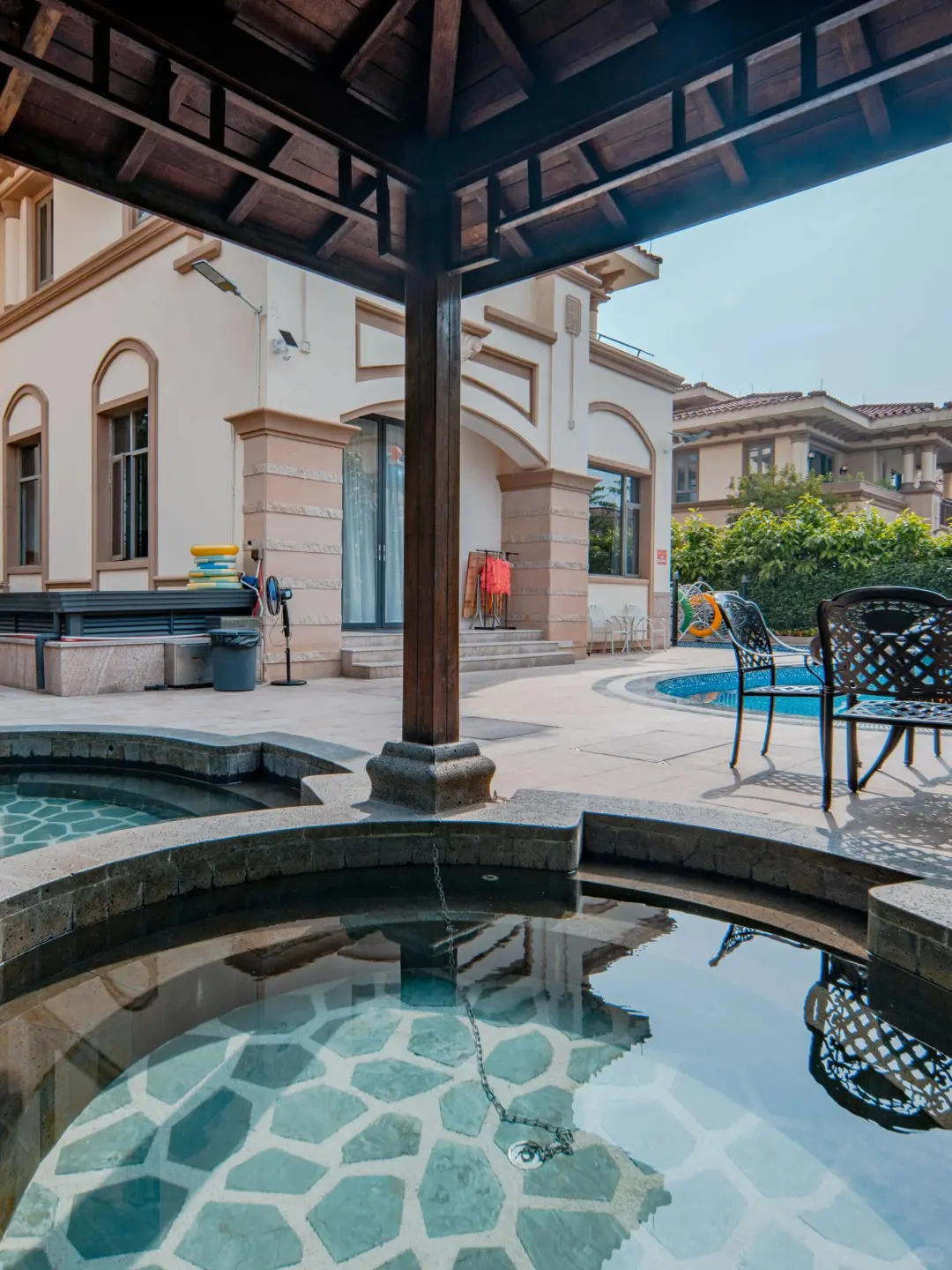 别墅设有恒温滑梯泳池🏊室内儿童乐园🎠甚至还有亲子套房。别墅自带麻将🀄️KTV🎤私家双温泉泡池♨️来这里亲子度假真的是太适合了❗️