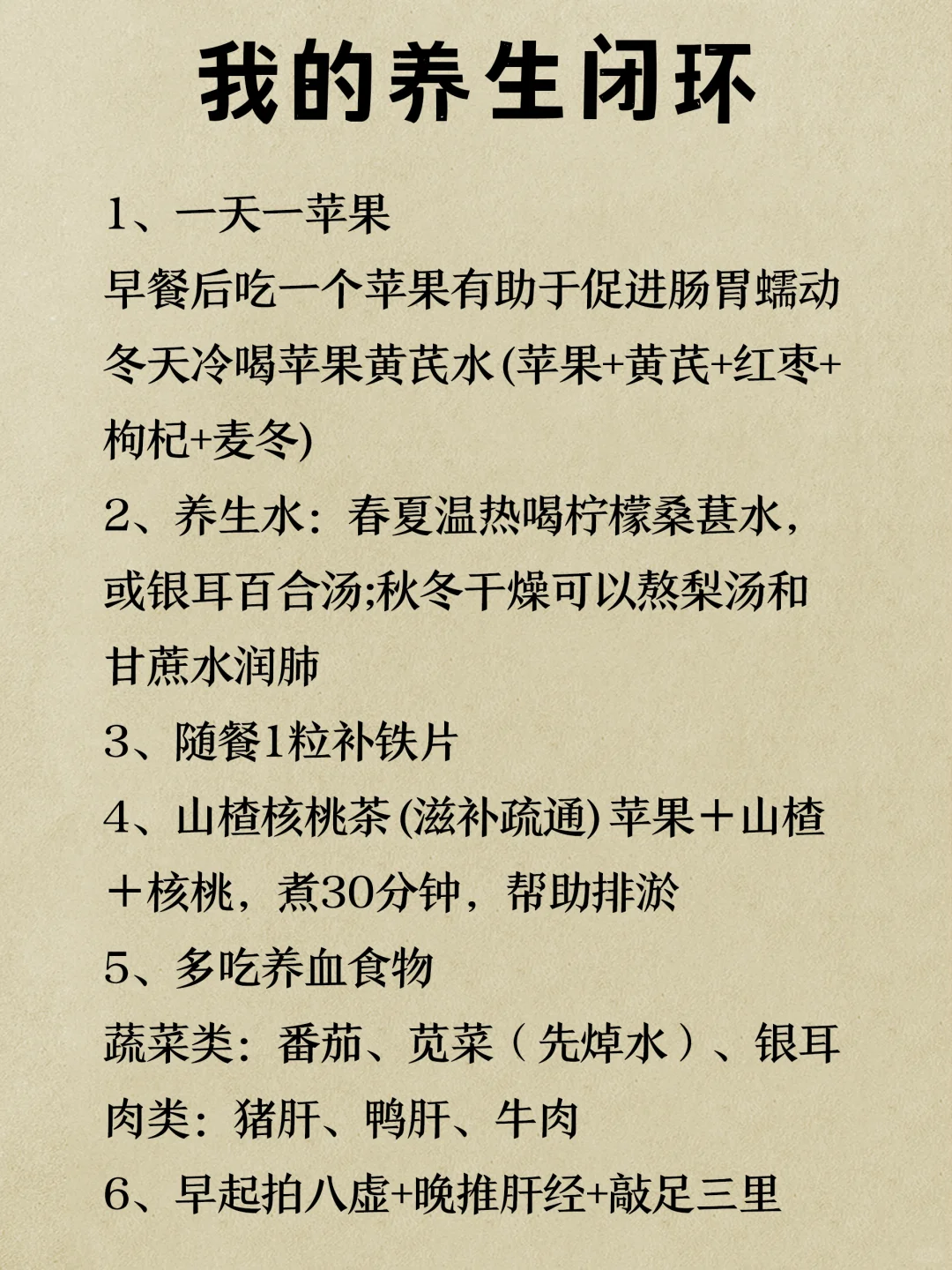 如今年的我精力在线,面色红润,眼睛有神不浑浊,体 检一路绿灯,比同龄人精神面貌好多了,这一切都跟我坚持30年的养生闭环有关系