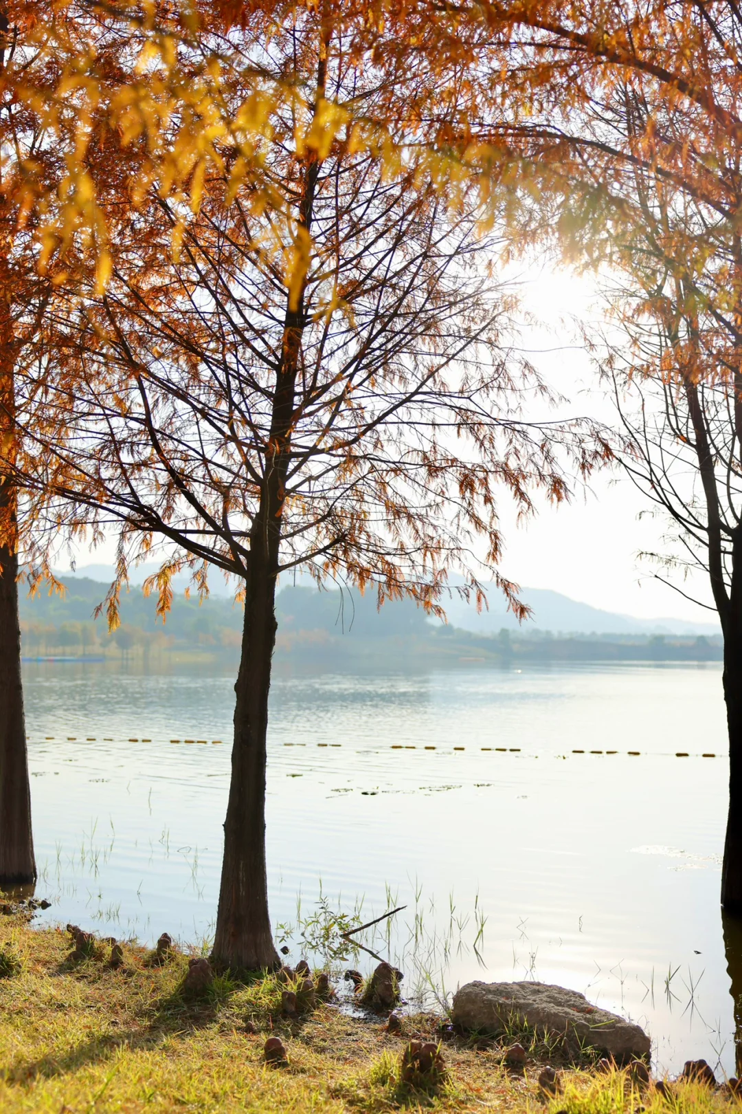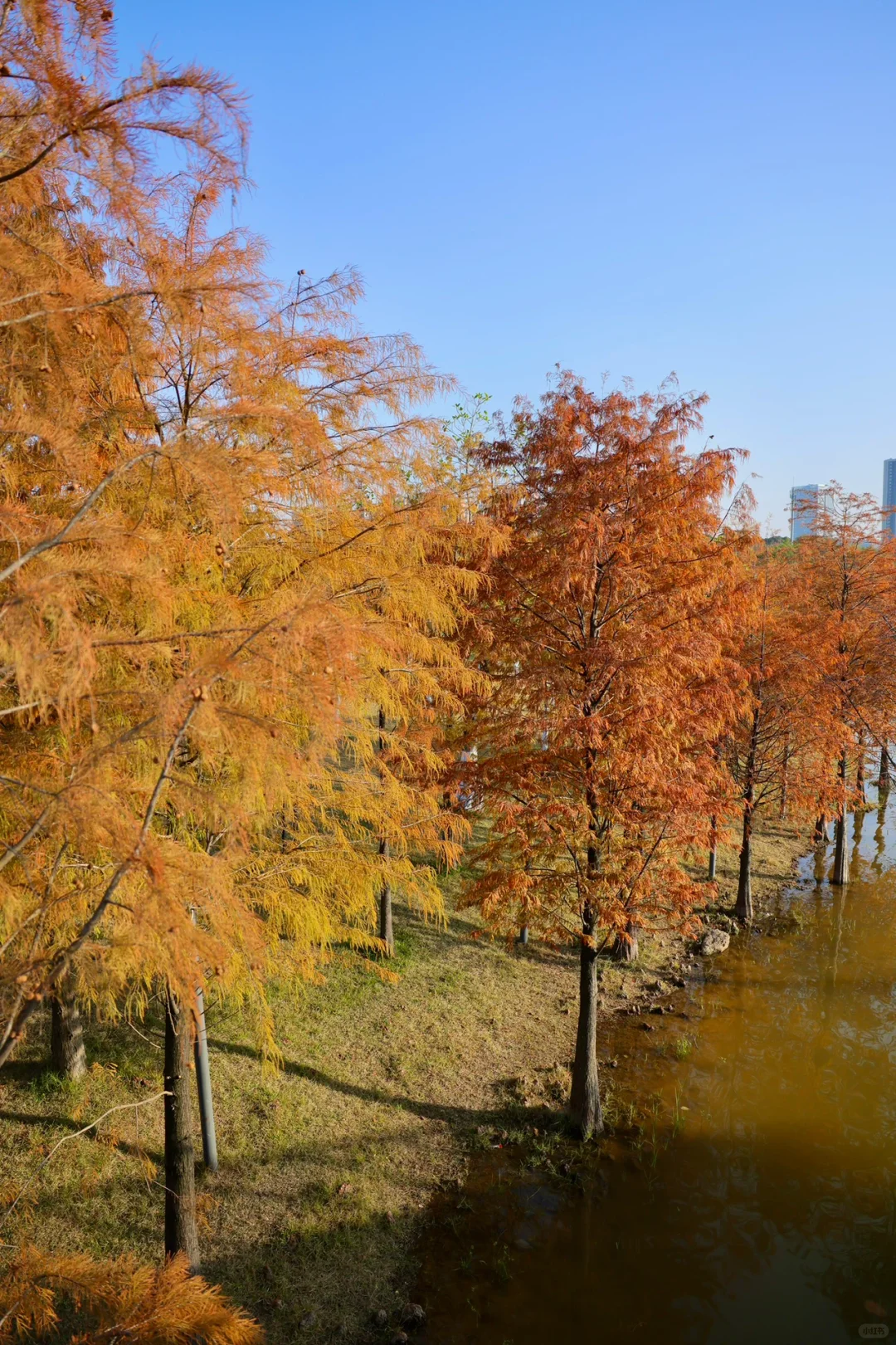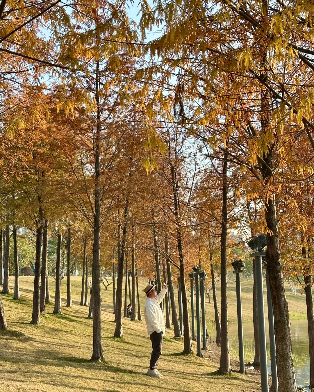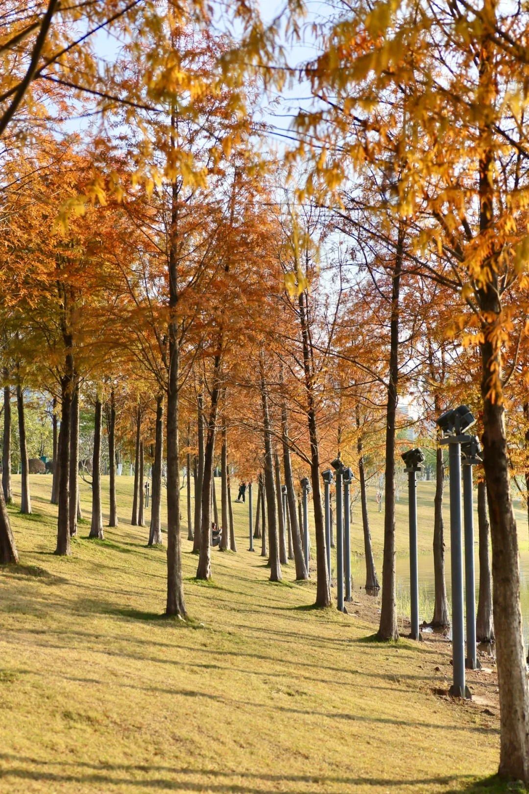广州这个湖边的落羽杉红啦,好美(12.20实拍)
