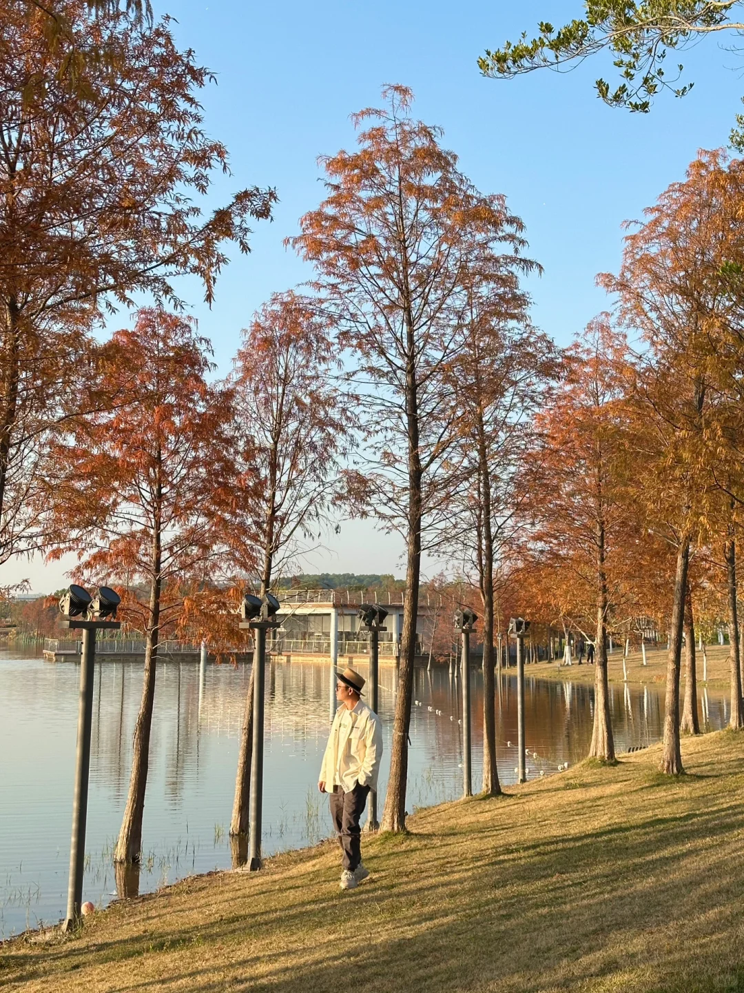 广州的12月是落羽杉的季节 越来越多的落羽杉开始变红 在黄埔区知识城的九龙湖公园这片红了好多啦[派对R] 红了快7成了,拍照也很出片 公园也是免费哒[偷笑R] 人又少,空气清新,还有美美哒日落 环湖都有落羽杉,我只去了一小片 适合逛上半天 也可以找一片有落羽杉的草地躺着放空,真的舒服😌 拍照tips: 1:可野餐露营,可带宠物,可以骑车,地方很大 2:拍照穿浅色衣服好看呦 3:下午来就行,夕阳很棒 📍:广州黄埔区中新知识城九龙湖公园 交通:🚇14号线知识城站c口步行500米